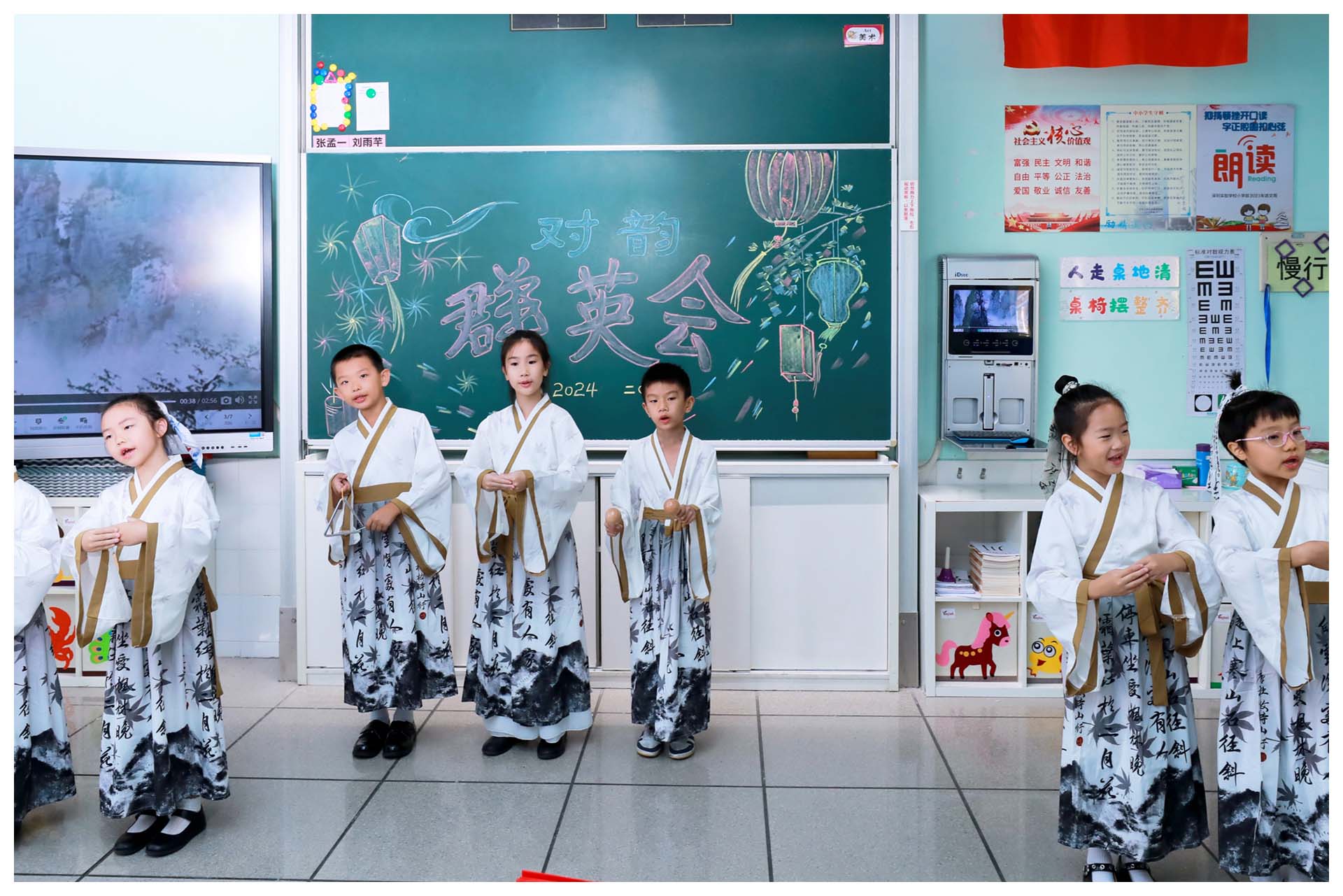 二年级同学在本次语文周活动中,开展了 “对韵小雅士”和“对韵群英会” 两项妙趣横生的活动,于古韵的海洋中尽情遨游,感受韵律之美,启迪心智。