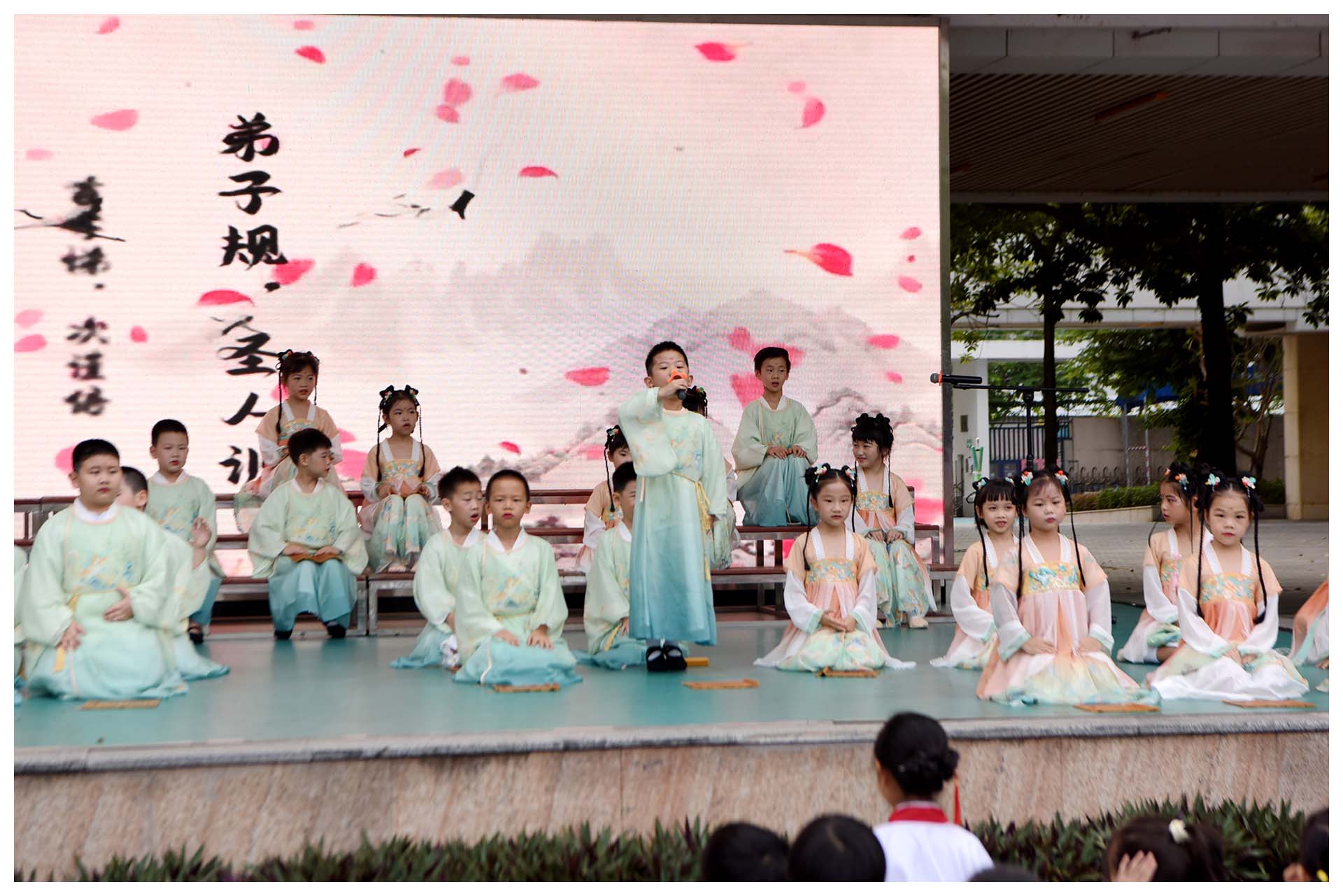 《弟子规》小组诵读比赛,孩子们全身心投入准备,每一个细节都饱含热情。精美的服装,精致的道具,变化的队形,特色的诵读,孩子们用清澈的嗓音、纯真的情感,奏响了传统文化的华丽乐章。