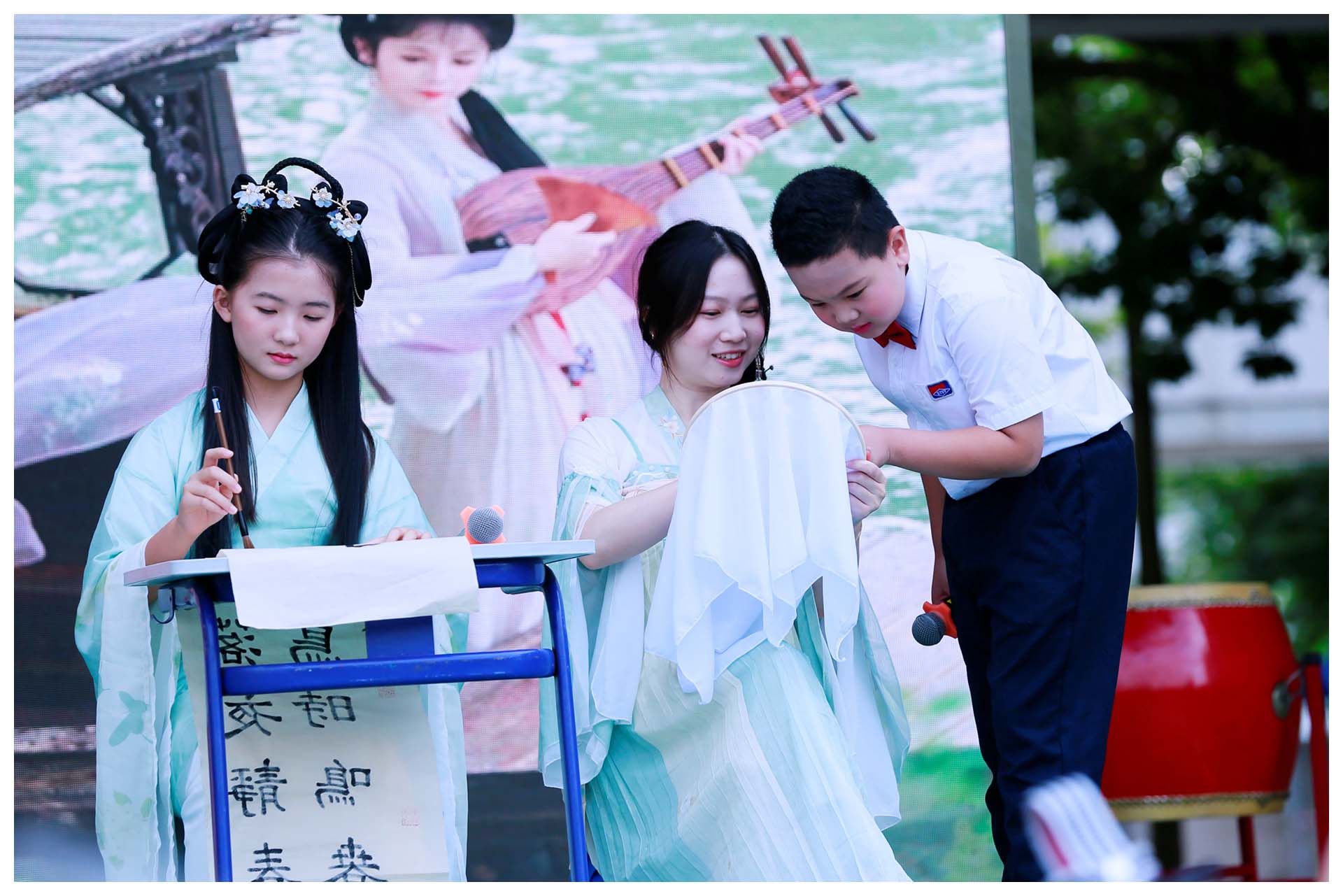 与此同时,别开生面的《笠翁对韵》诵演活动在悠悠古韵中同步进行。各班同学从《笠翁对韵》中精心选取经典段落,用清晰的发音、抑扬顿挫的语调,展现出独特的韵律之美。表演环节更是精彩纷呈:有的同学身着古装,以优美婀娜的舞姿展现对韵中的深邃意境;有的则以刚劲有力的武术动作,诠释传统文化的刚柔并济,赢得台下观众阵阵雷鸣般的掌声。