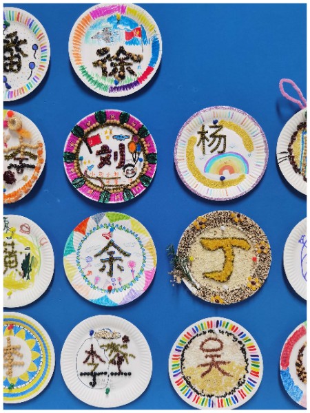 百家姓纸盘创意画比赛,则是一场艺术盛宴。在家长的协助下,孩子们尽情发挥想象。他们用五彩斑斓的五谷杂粮,还有各种各样奇特的装饰品,精心设计自己的姓氏作品。在欣赏和创作中,他们更加深入地了解了姓氏背后蕴含的丰富文化。