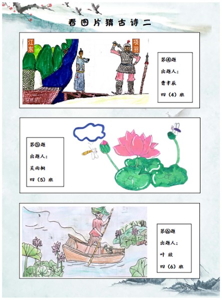 六年级的同学们充分利用自己的诗词储备,为低年级同学出题。不仅巩固了自身知识,更将诗词之美传递下去,让低年级同学也沉浸在诗词的乐趣之中。