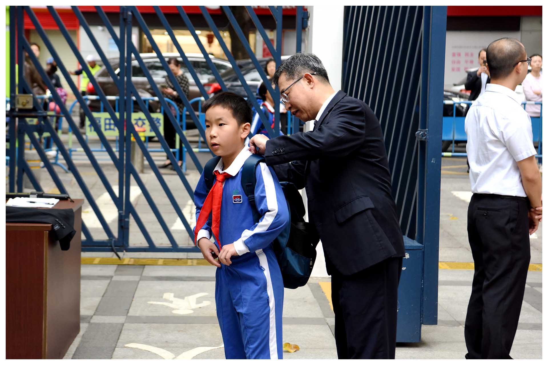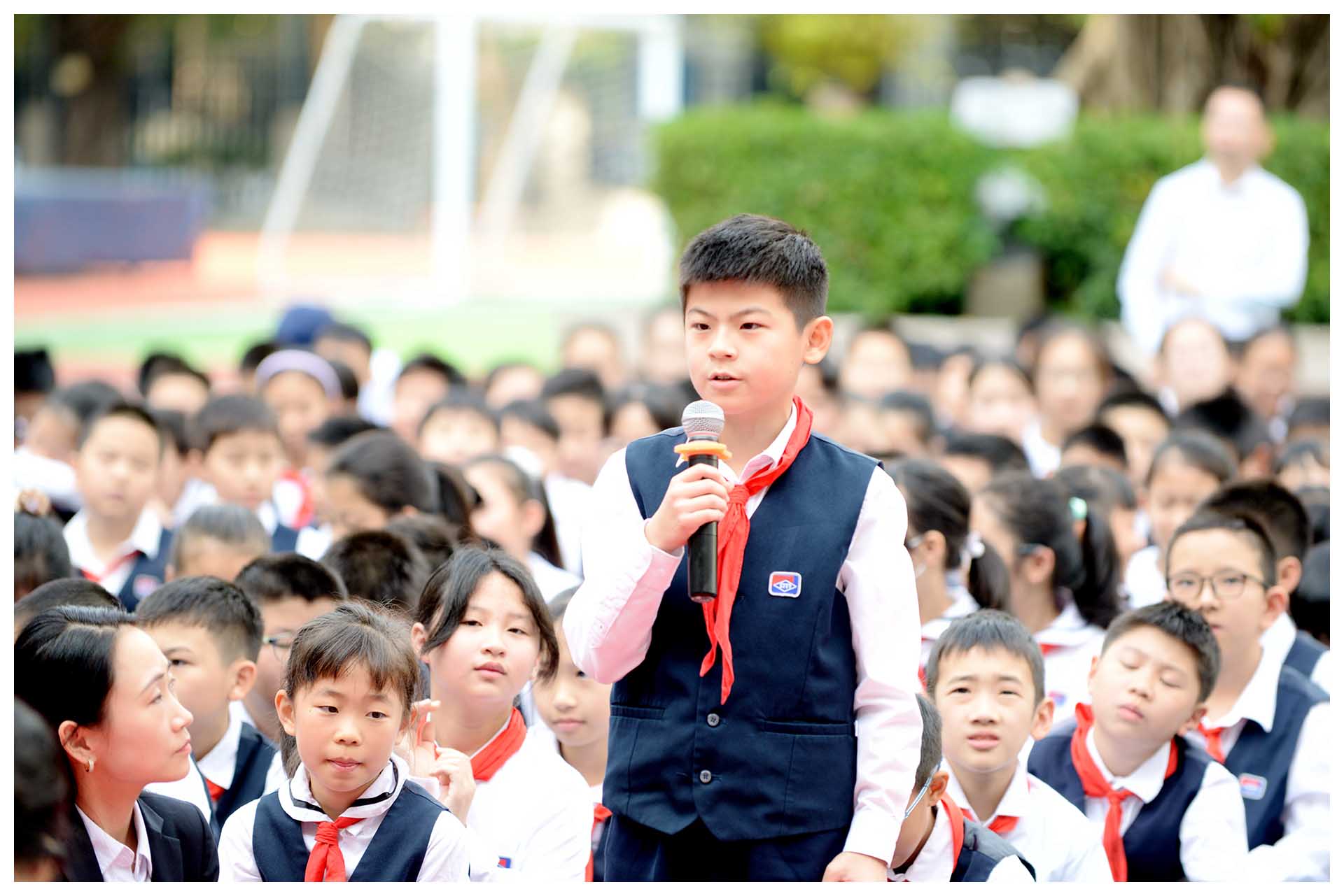 庄严的升旗仪式,响彻校园的国歌声,冉冉升起的国旗,让人意气风发。胸怀大格局,做好小事情。常规促发展,实验好学子。全校师生一起观看了一年级常规养成示范短片,欣赏了四(1)班同学表演的舞蹈《同桌的你》。春风吹拂,暖意入心,深圳实验学校副校长、小学部执行校长吴立新健步上台,给全体师生上了开学第一课《榜样的力量:向解放军叔叔学习 让我们更卓越》,号召全体同学要向解放军叔叔学习,学习他们为国为民的大爱情怀,不怕困难的坚强意志,把小事做到极致的优秀品质,珍惜时间的守时信念和从不拖延的超强执行力。吴校的讲话入脑入心,鼓舞了全场同学的热情,在随后的主持人进行的现场采访中,同学们纷纷发言,表示要像解放军那样高标准,严要求,做更加优秀的实验好学子,做未来国家有用的人。