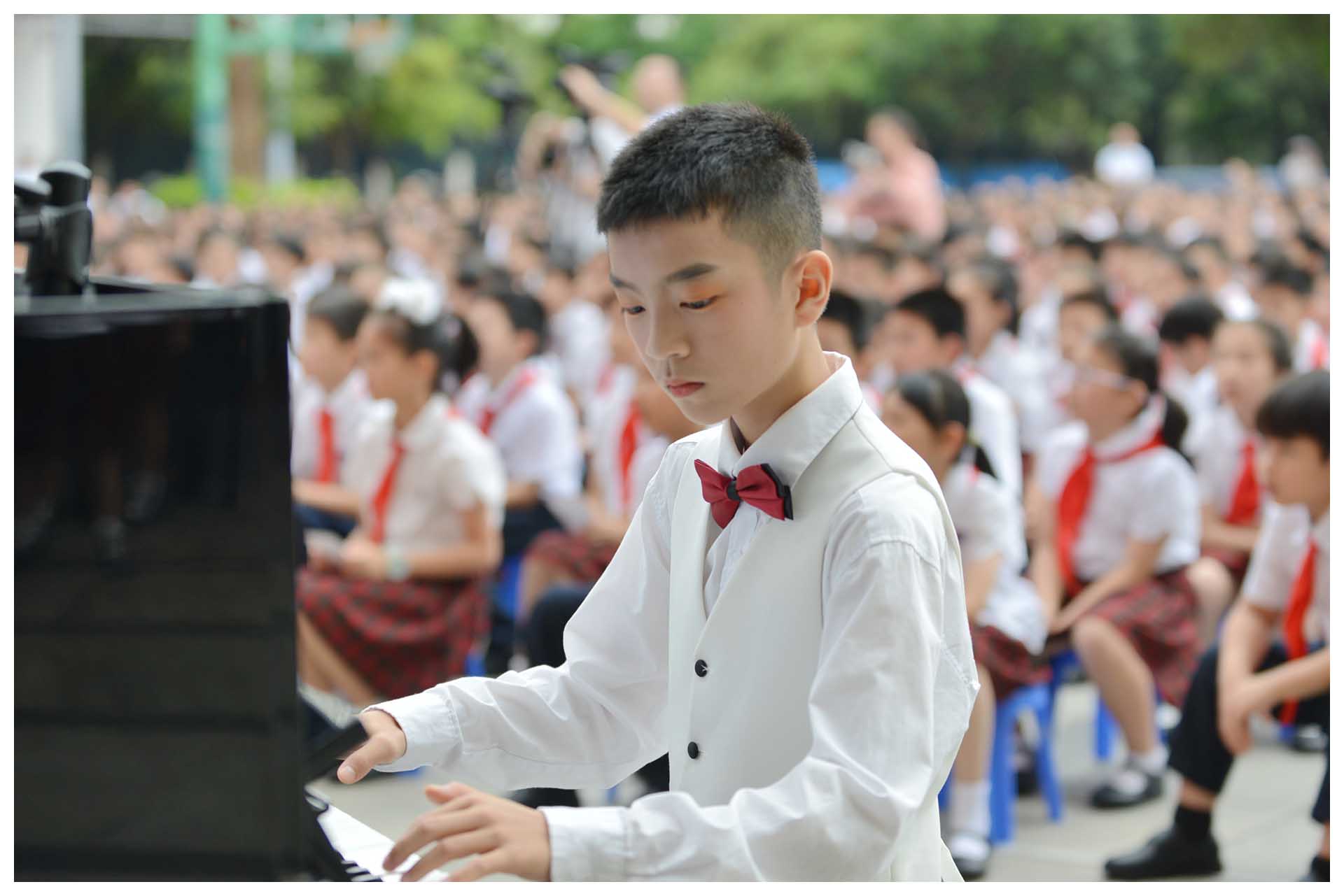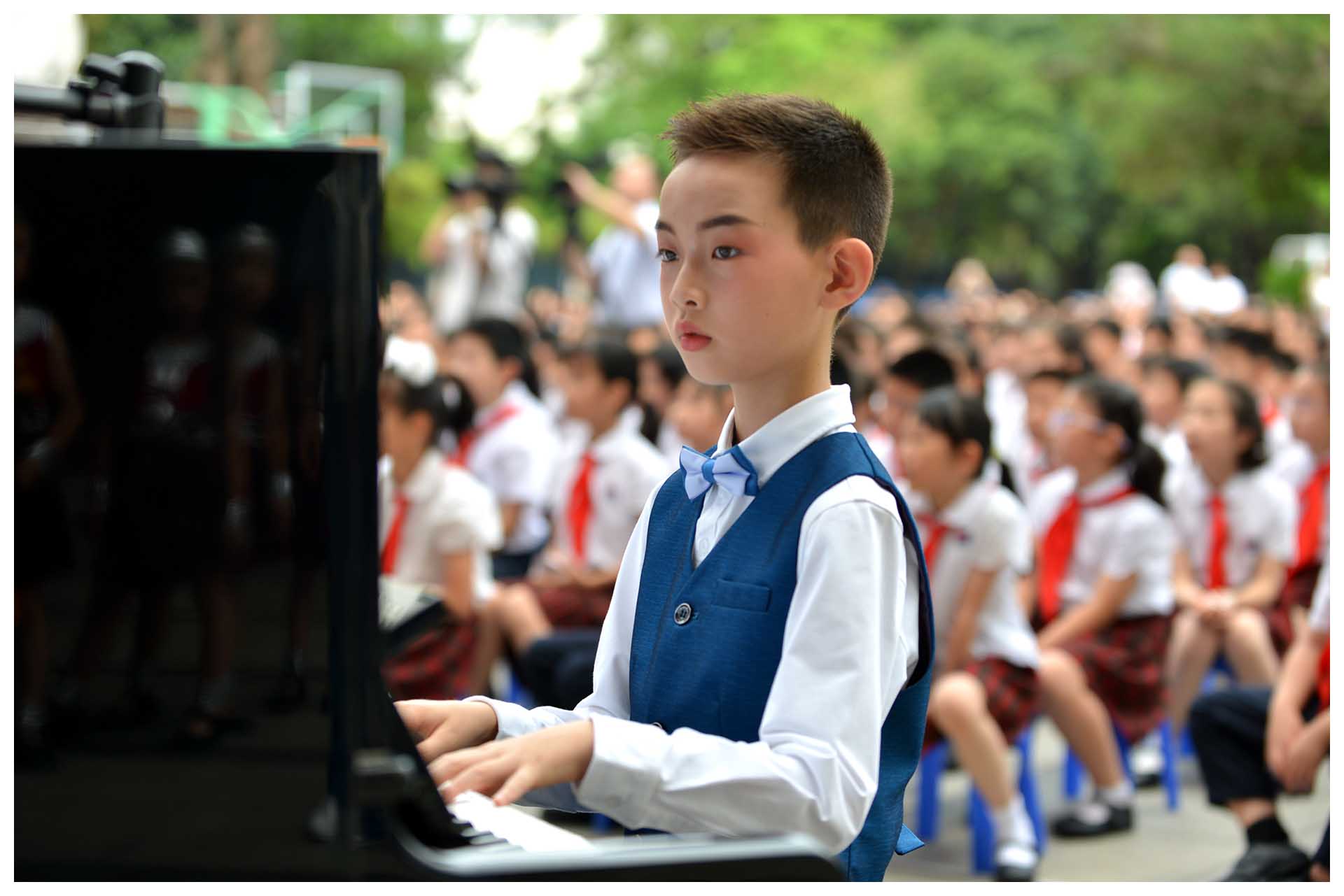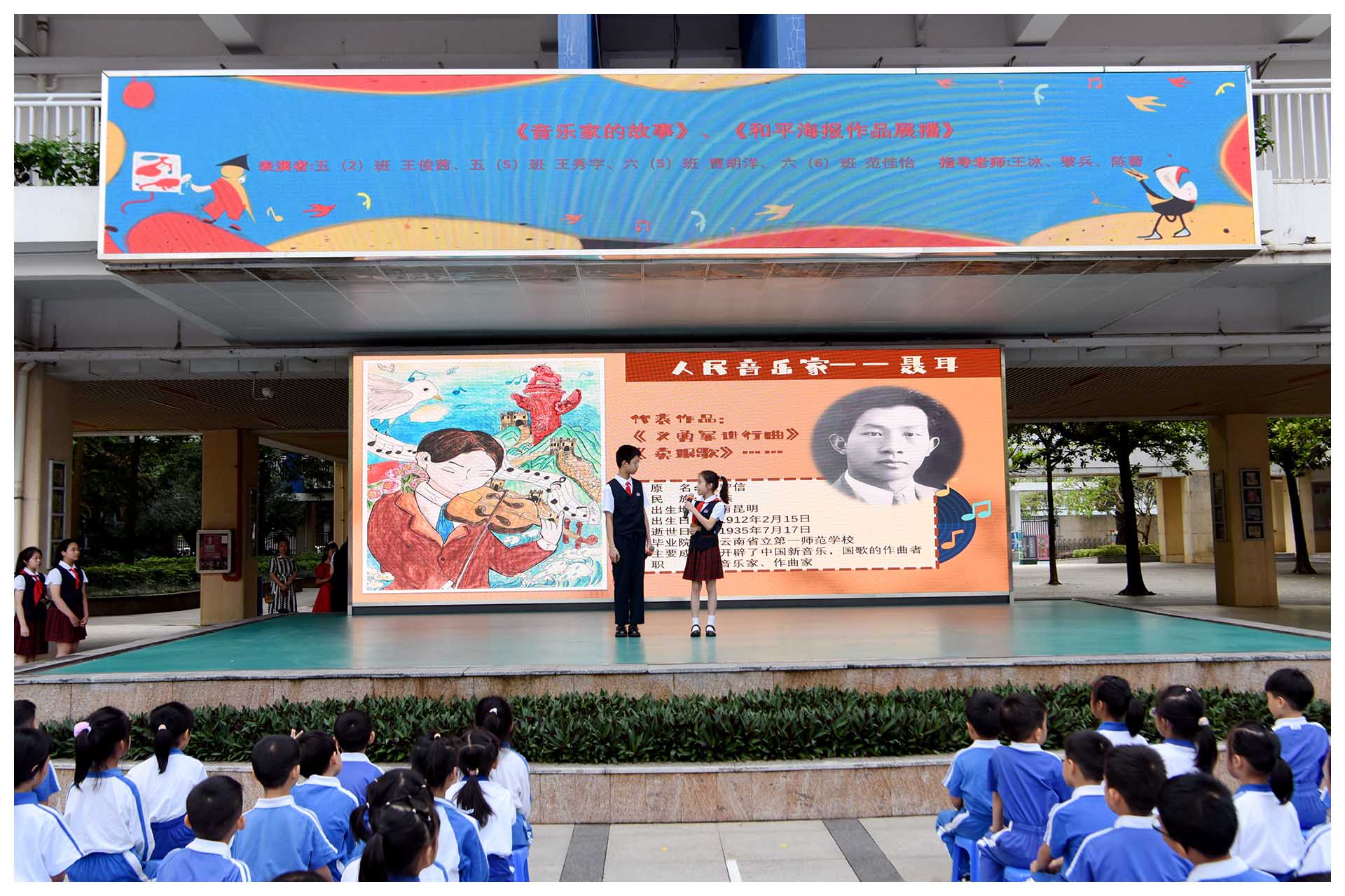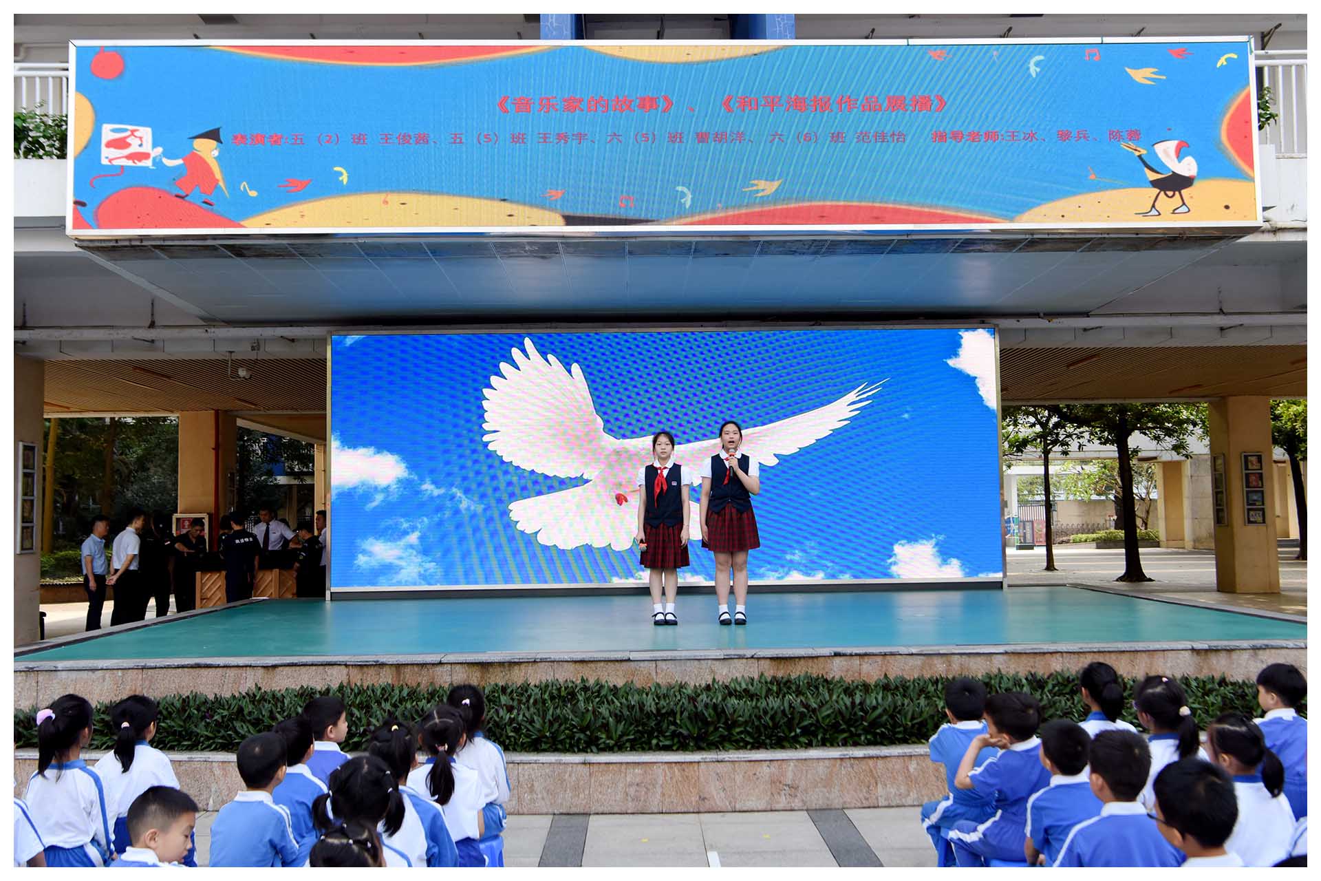 伴随着优美的旋律,小画家们走上舞台为我们介绍他们画作中呈现的音乐家的故事以及和平海报系列优秀作品,实验学子用他们的妙笔与佳作擦亮了少年强国梦想,用色彩守望着和平,放飞希望,共筑人类美好明天。