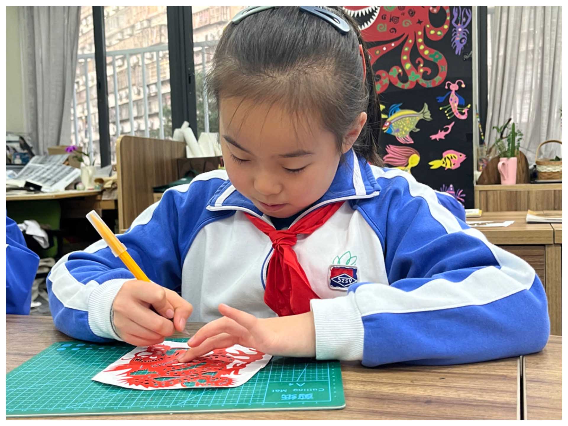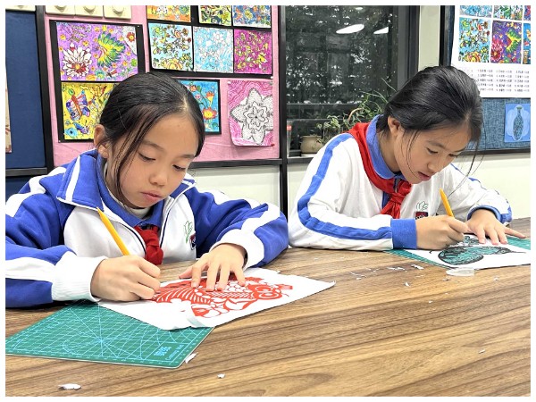 剪纸艺术历经千年历史,是最古老的中国民间艺术形式。凭借一剪一纸,展现了镂空艺术特别的美。同学们在剪纸课程中用心创作,收获一幅幅或朴拙或精巧,或简约或繁复的灵动的剪纸艺术作品。