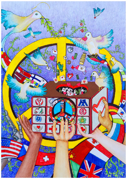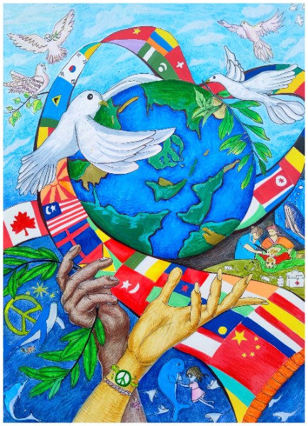 和平,是人类共同的愿望,也是深圳实验学校健全人格教育传递给孩子们的重要理念。孩子们通过精彩的画作描绘了自己对世界和平的祈愿和向往,用坚定的声音向世界呼喊和平。