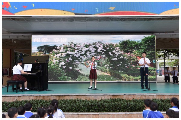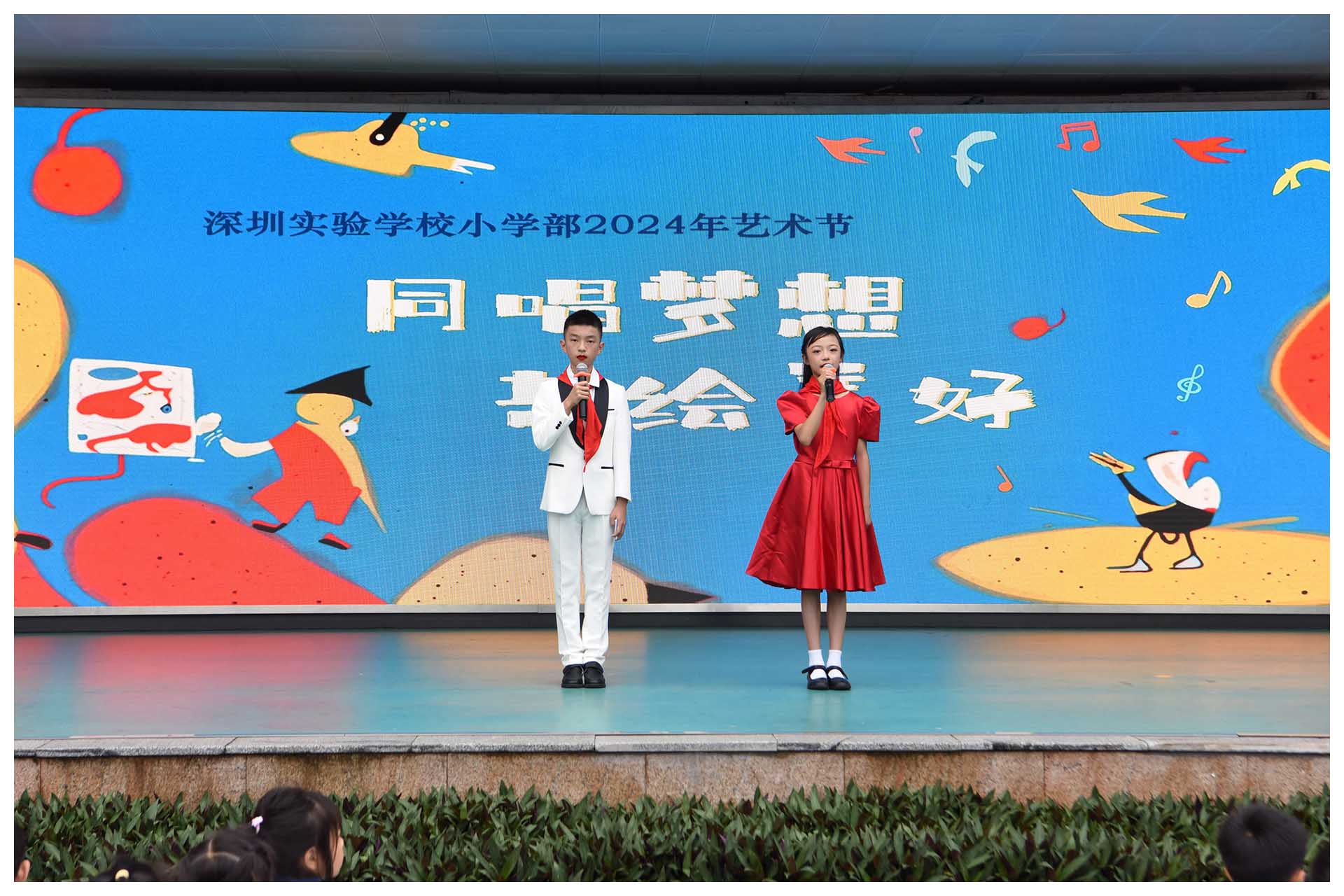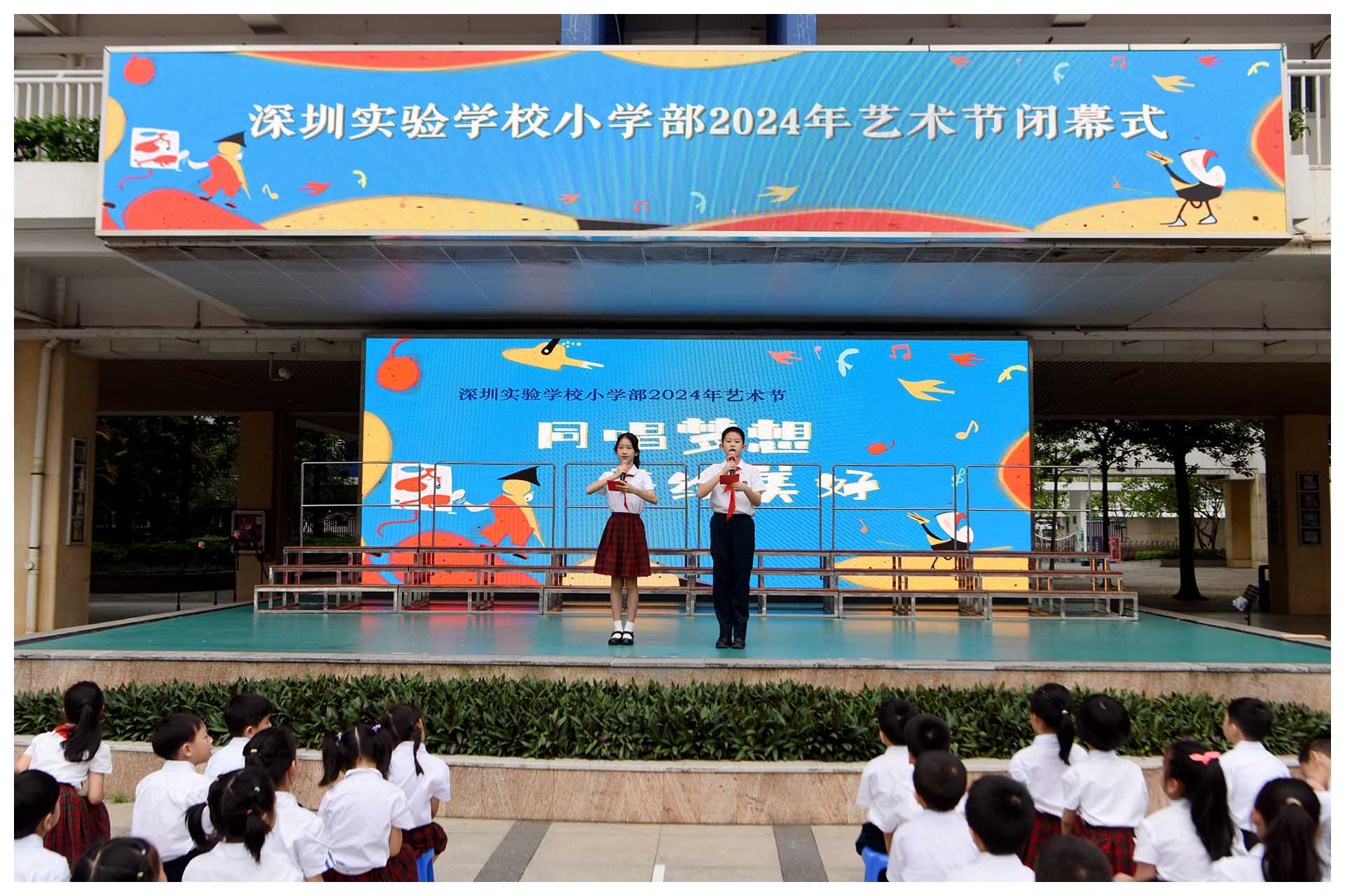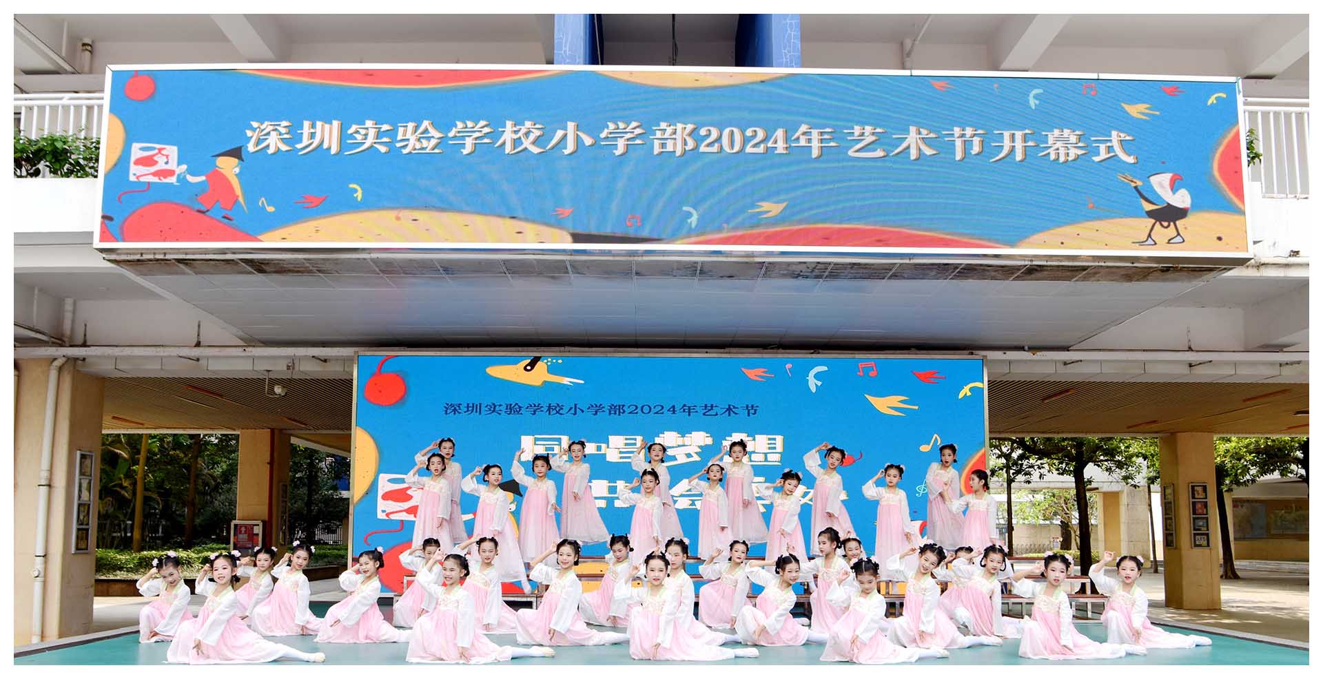 本年度艺术节坚持围绕深圳实验学校小学部“人人美育”教育理念,凸显“立足人人、放眼成长、聚焦课程、用爱滋养”的平实办学主张,以“同唱梦想·共绘美好”为主题,在全校各年级艺术课堂及社团中开展美育课程,结合爱国主义教育、经典艺术学习、校庆文化浸润、健全人格教育等教育理念融合,用歌声与画笔放飞孩子们的童年梦想,实现以美育人、以美化人、以美培元的美育目标。