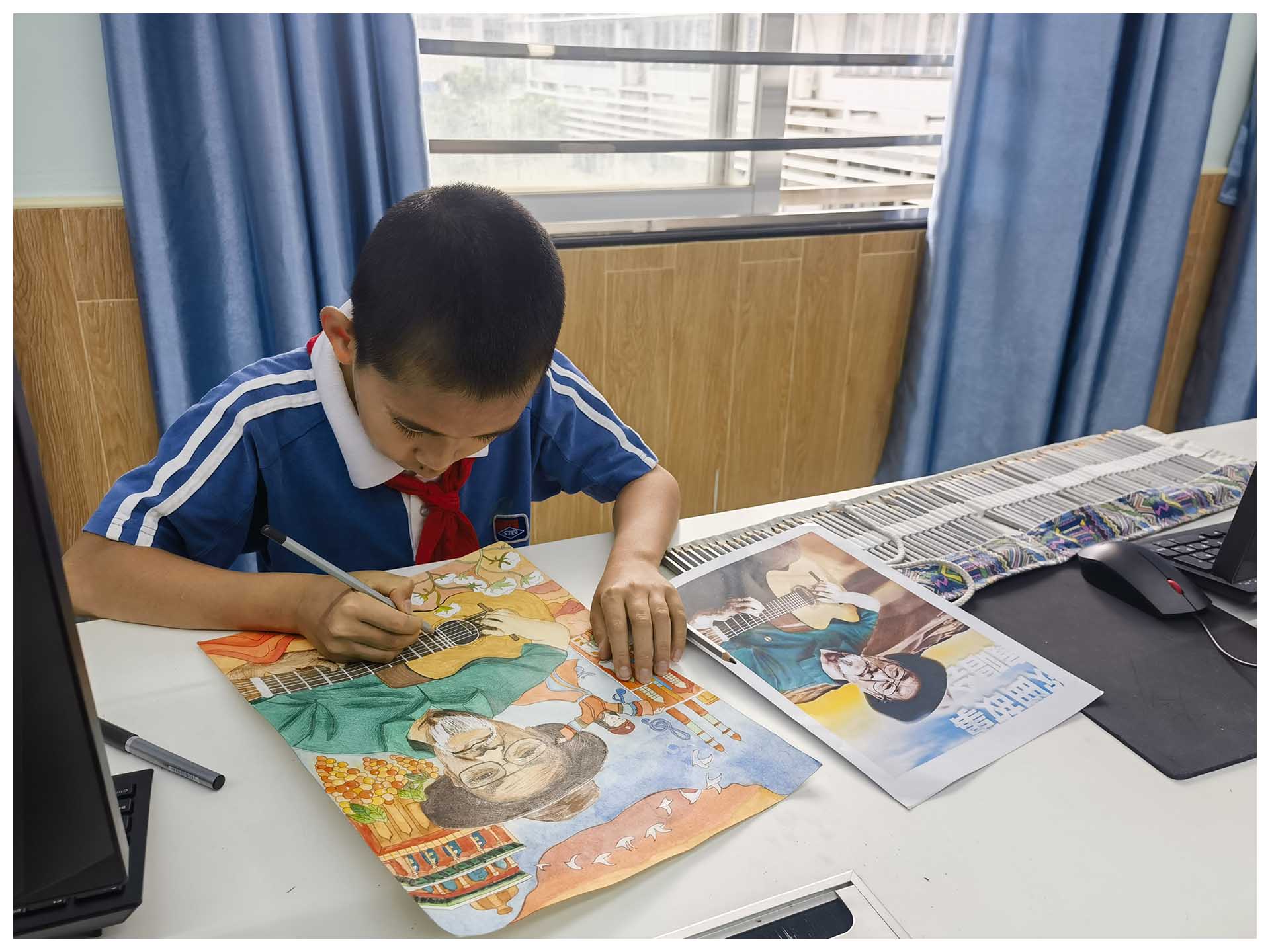 伴随经典的旋律与嘹亮的歌声,实验学子妙笔生花,他们创作的“音乐家的故事”系列插画,传递了音乐家们的动人事迹与爱国主义精神。