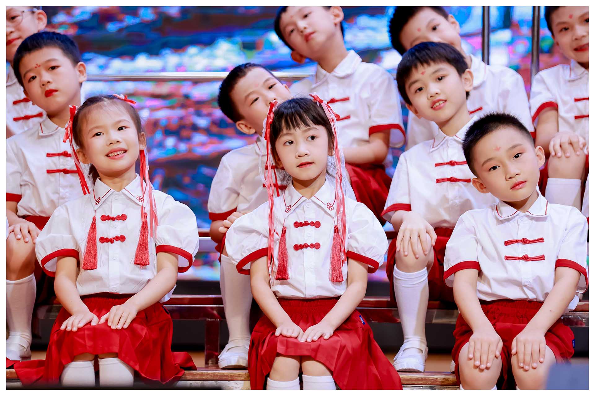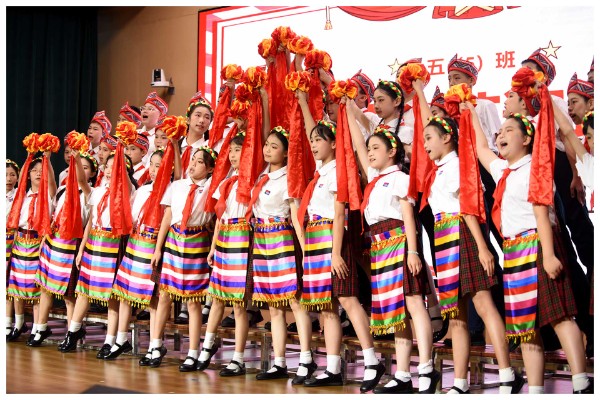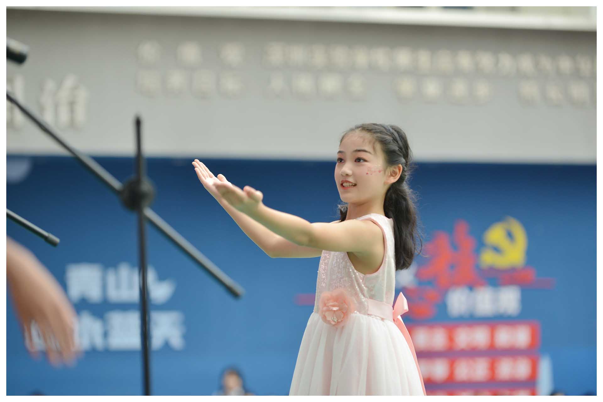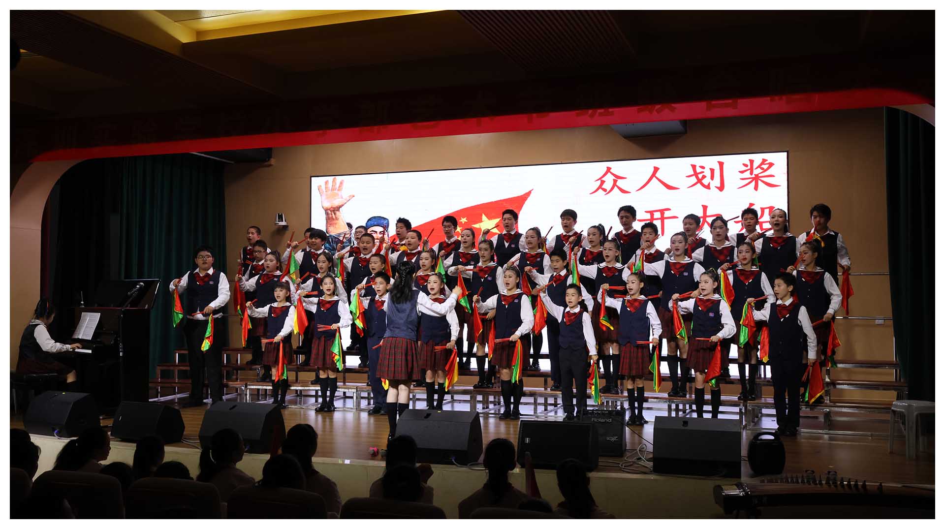 四年级的同学们齐声唱响祖国的美好,“祖国在我心窝里”、“我们是祖国灿烂的未来”……他们用歌声真情诉说对祖国的爱,他们的和声统一,动作整齐,让我们享受了这场听觉盛宴。