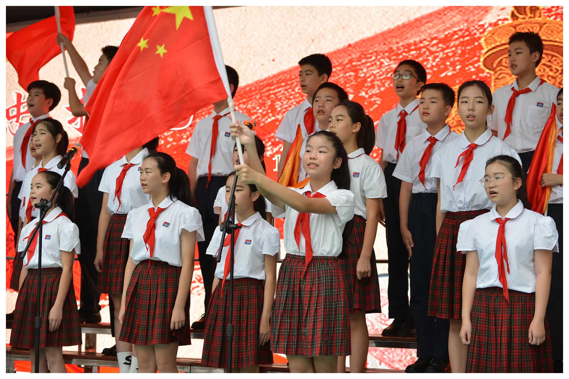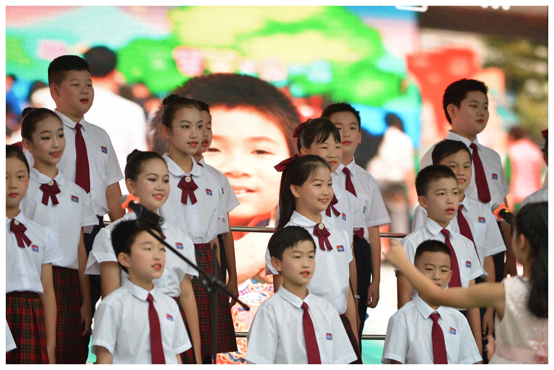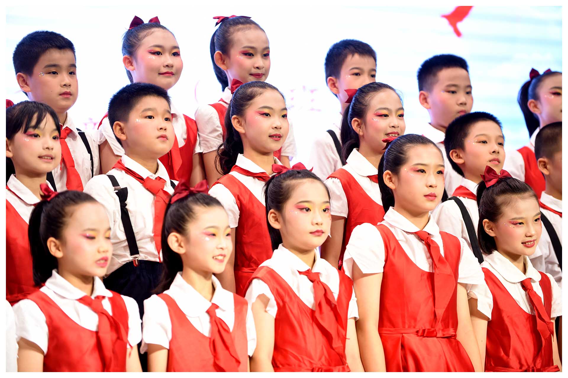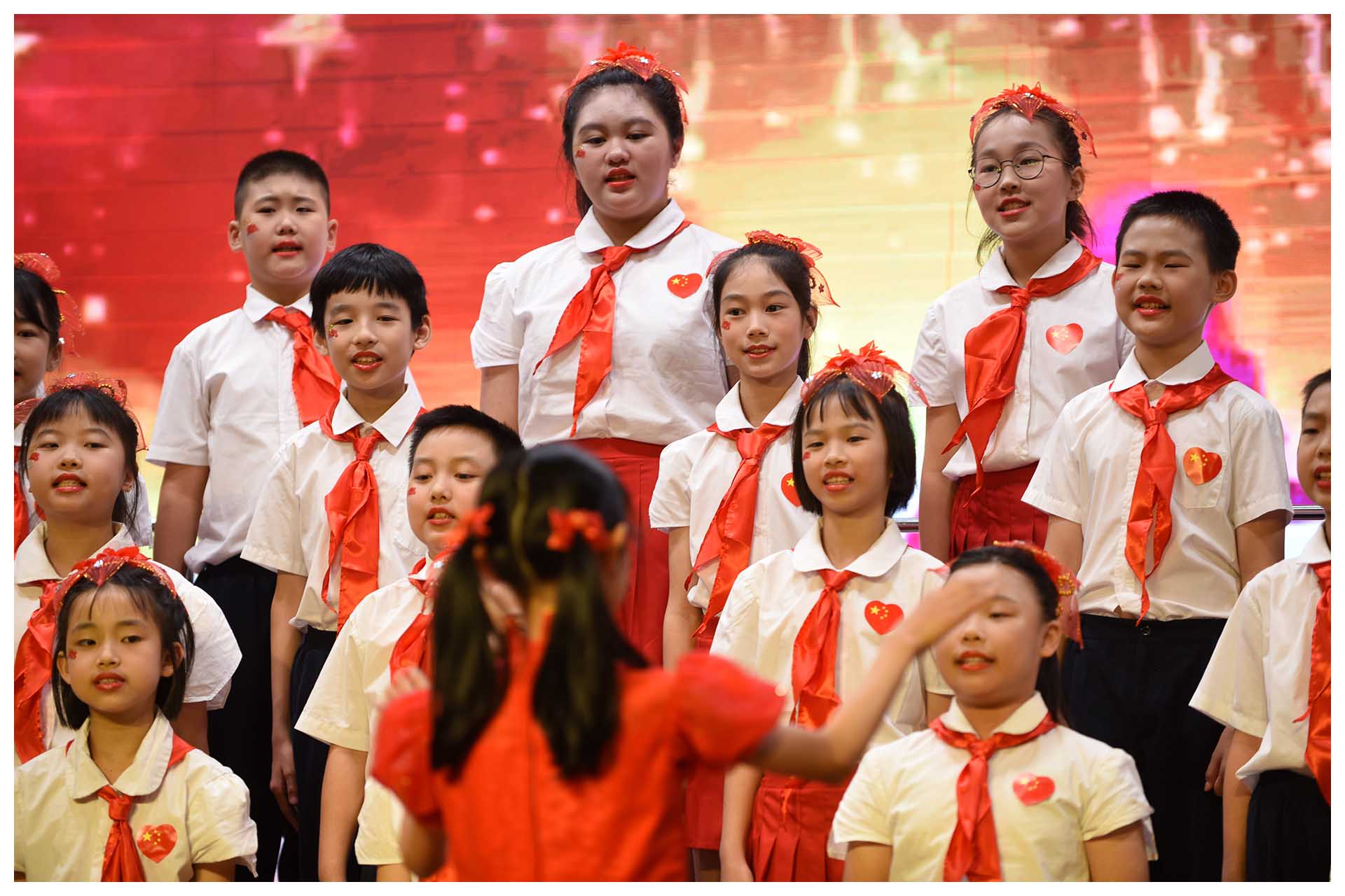 四年级的同学们齐声唱响祖国的美好,“祖国在我心窝里”、“我们是祖国灿烂的未来”……他们用歌声真情诉说对祖国的爱,他们的和声统一,动作整齐,让我们享受了这场听觉盛宴。