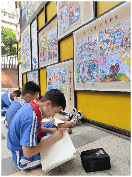 本年度艺术节展览以“童心筑梦,共绘美好”为主题,在全校各年级美术课、美术社团中开展六个系列主题创作课程,用画笔表达孩子们的童年梦想和对幸福、和平的美好未来的憧憬。根植中华传统文化沃土,作品融入优秀传统文化,提升学生民族文化自信。