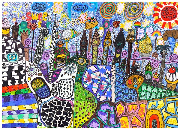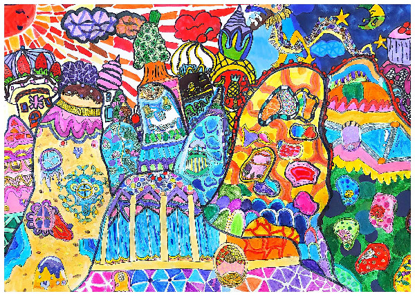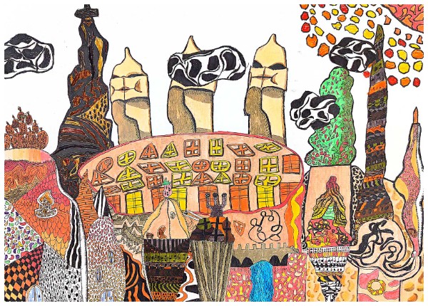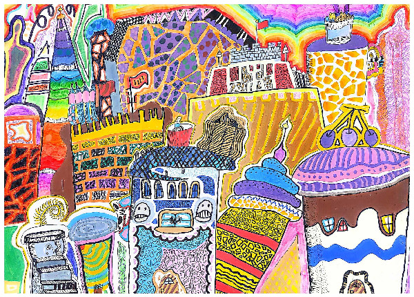 西班牙著名建筑师——安东尼·高迪被誉为建筑界的达芬奇,一生创作的七座建筑被评为世界级文化遗产。在他的作品当中城池如同一盘色彩明艳、梦幻灵动的棋子,充满了绮丽的想象。同学们用画笔致敬高迪,挥洒对世界最美好的希冀。