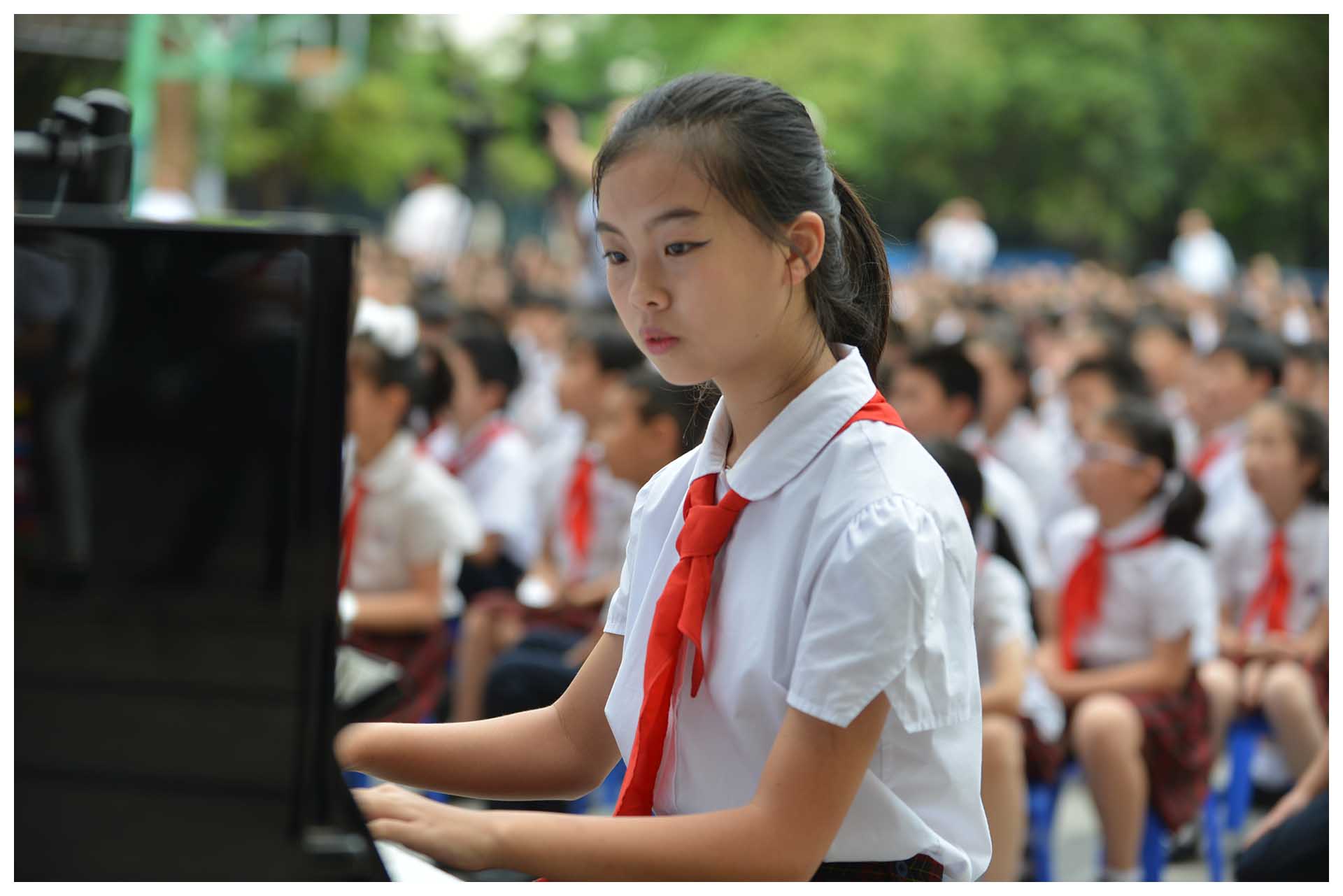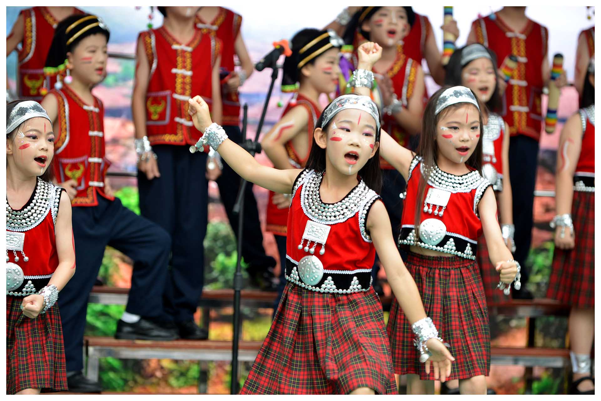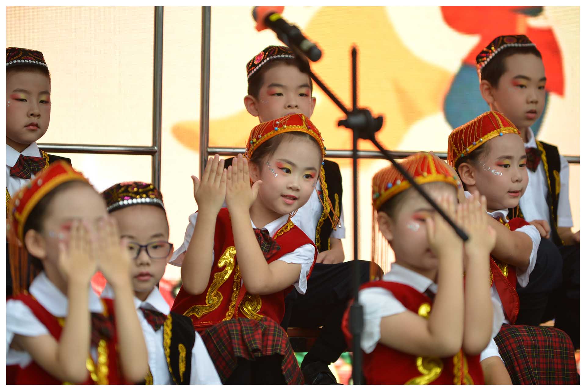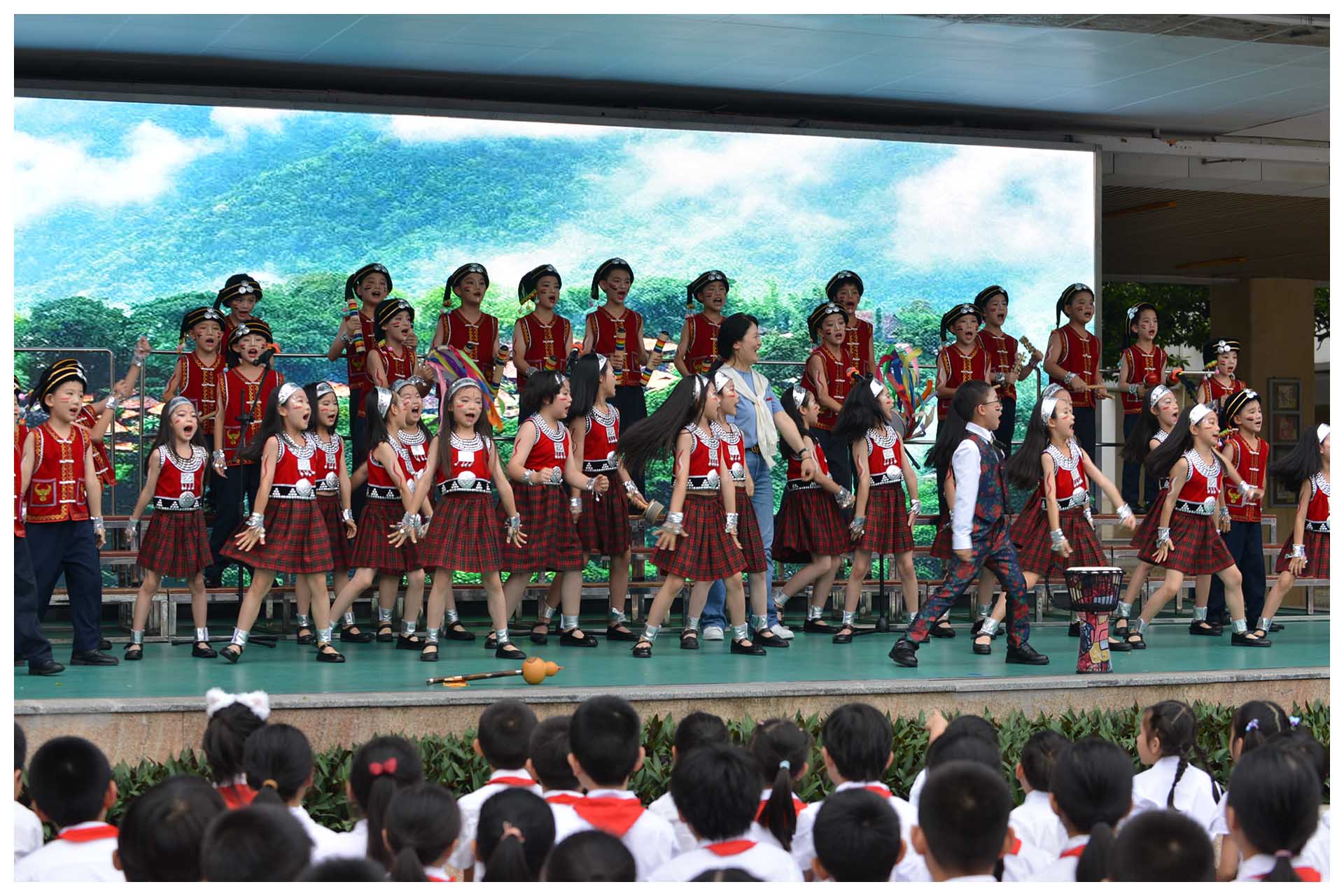 二年级以不同的地域民歌为亮点。像无垠的草原,如翻滚的海浪,似起伏的山峦。他们载歌载舞,投入演唱,他们的歌声嘹亮,让我们留下了深刻的印象。