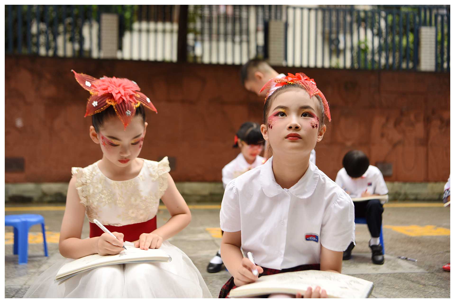 闭幕式的尾声,师生们一起欣赏了各年级同学们在写生大赛中描绘的校园风采,精湛的画技引得在场观众赞叹连连。