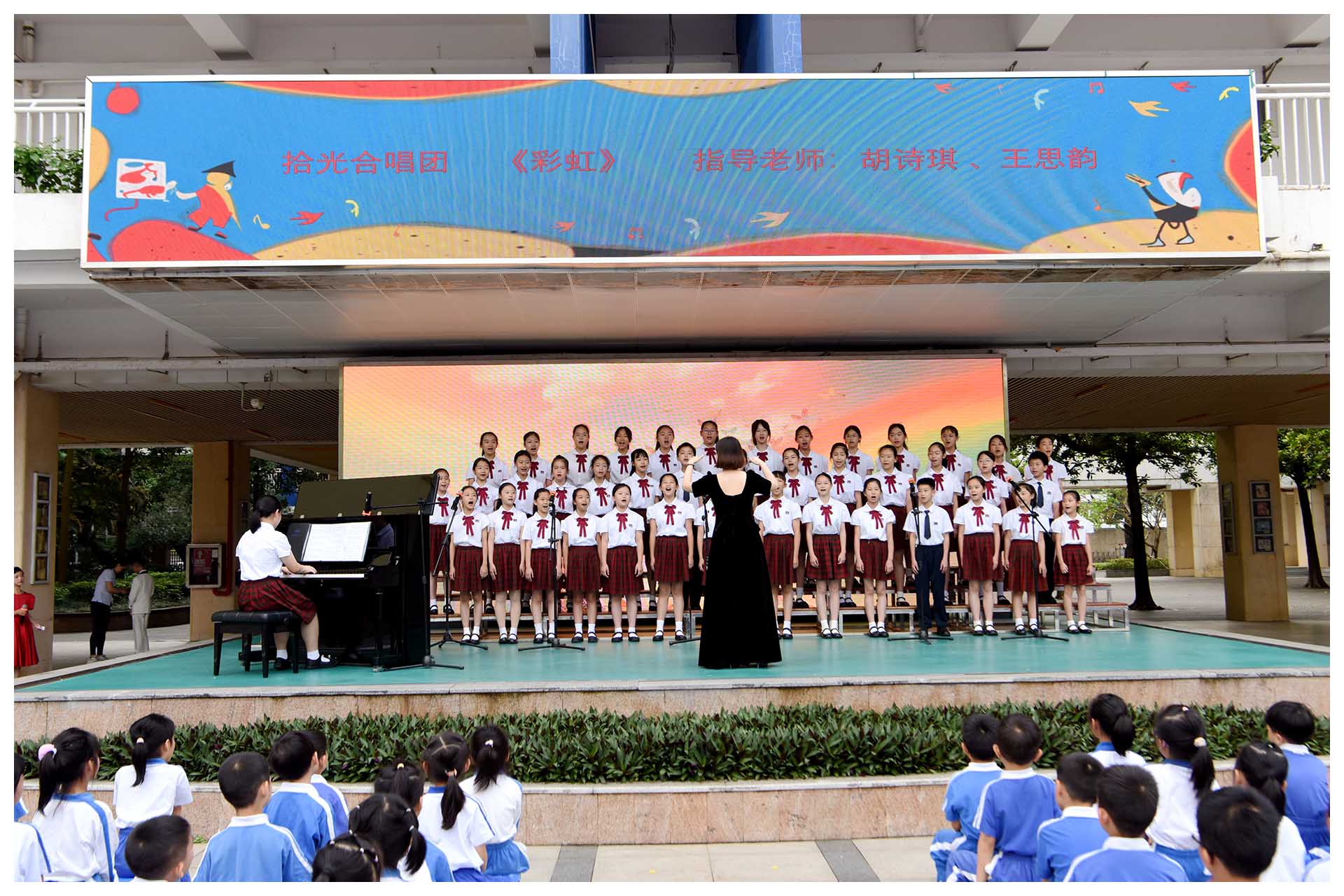 最后,艺术节开幕式在拾光合唱团动听的歌曲《彩虹》中落下帷幕。“我路过山峰,我遇见海洋...”,孩子们在教室的每一刻都如同学海里的旅程,长风破浪会有时,直挂云帆济沧海。就像歌声里的“彩虹永远在天上”,每一位孩子都将挥洒出属于自己最美的彩虹。