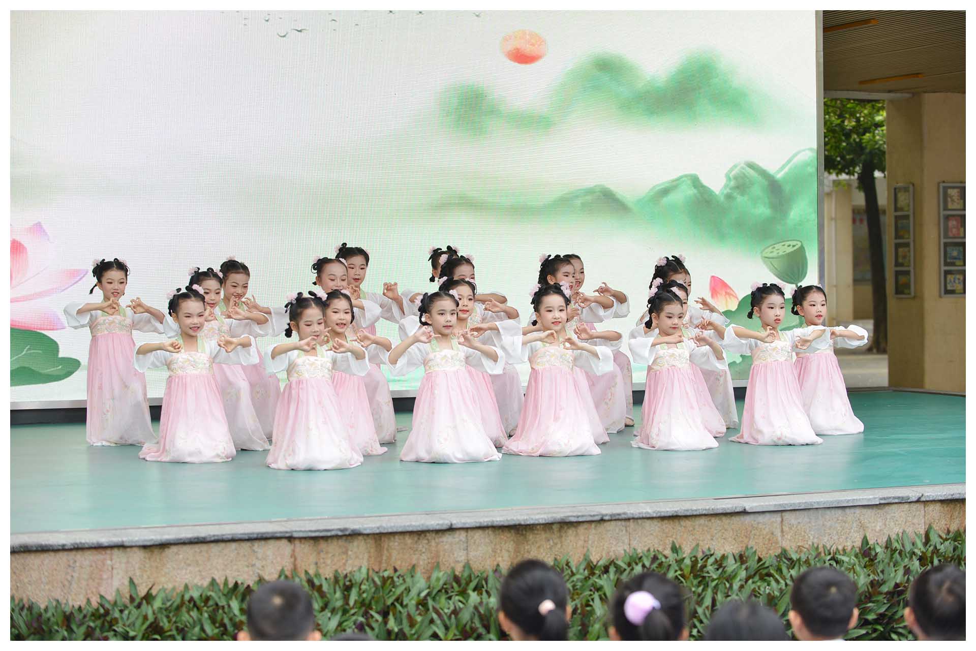 首先登场的足尖舞蹈团(低段)的小舞者们绽放着可爱的笑容,用青葱灵动的舞姿为我们演绎了《初夏》的欢乐。仿佛是荷塘戏水的渔童,又像是邻家采莲的女娃,拉开了这场雨季中的艺术节帷幕。