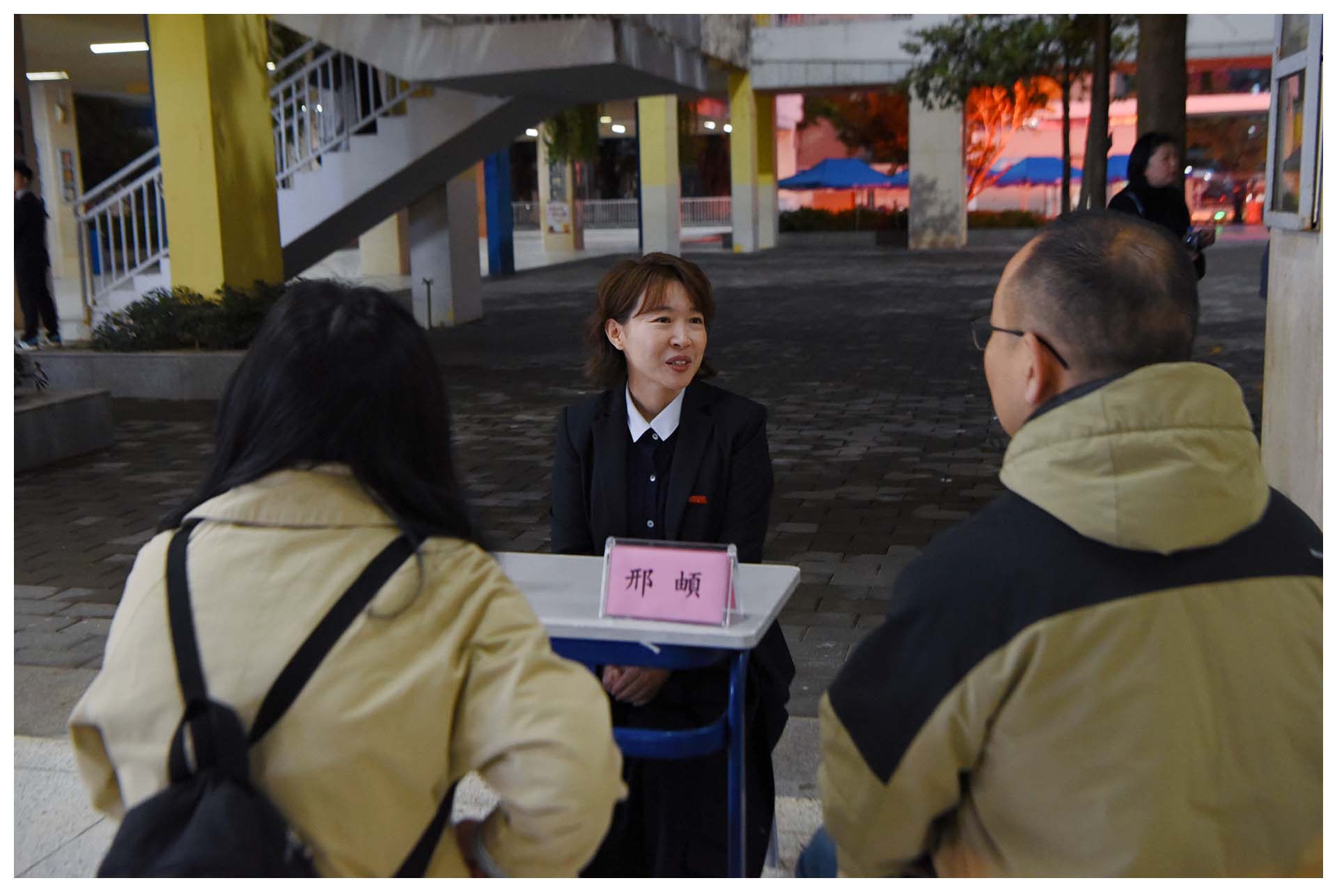 报告厅里,老师们提出本学期语文教学会在阅读和写作方面精讲精炼以打牢语文“童子功”;数学则是以“夯实小学基础,突破提升能力,衔接中学习惯”为核心任务开展本学期教学;英语教学则是在注重常规教学的同时,拓展学生的阅读和读写能力。最令人动容的,是冷雨中的“深度联结”。宣讲结束后,家长移步架空层与教师分组个别交流。家长们簇拥在教师身旁,询问个性化学习建议。老师们认真倾听每一位家长的疑惑,耐心给出了专业建议。交流中家长们热情高涨,风雨中的坚守,恰是家校同心最生动的注脚。