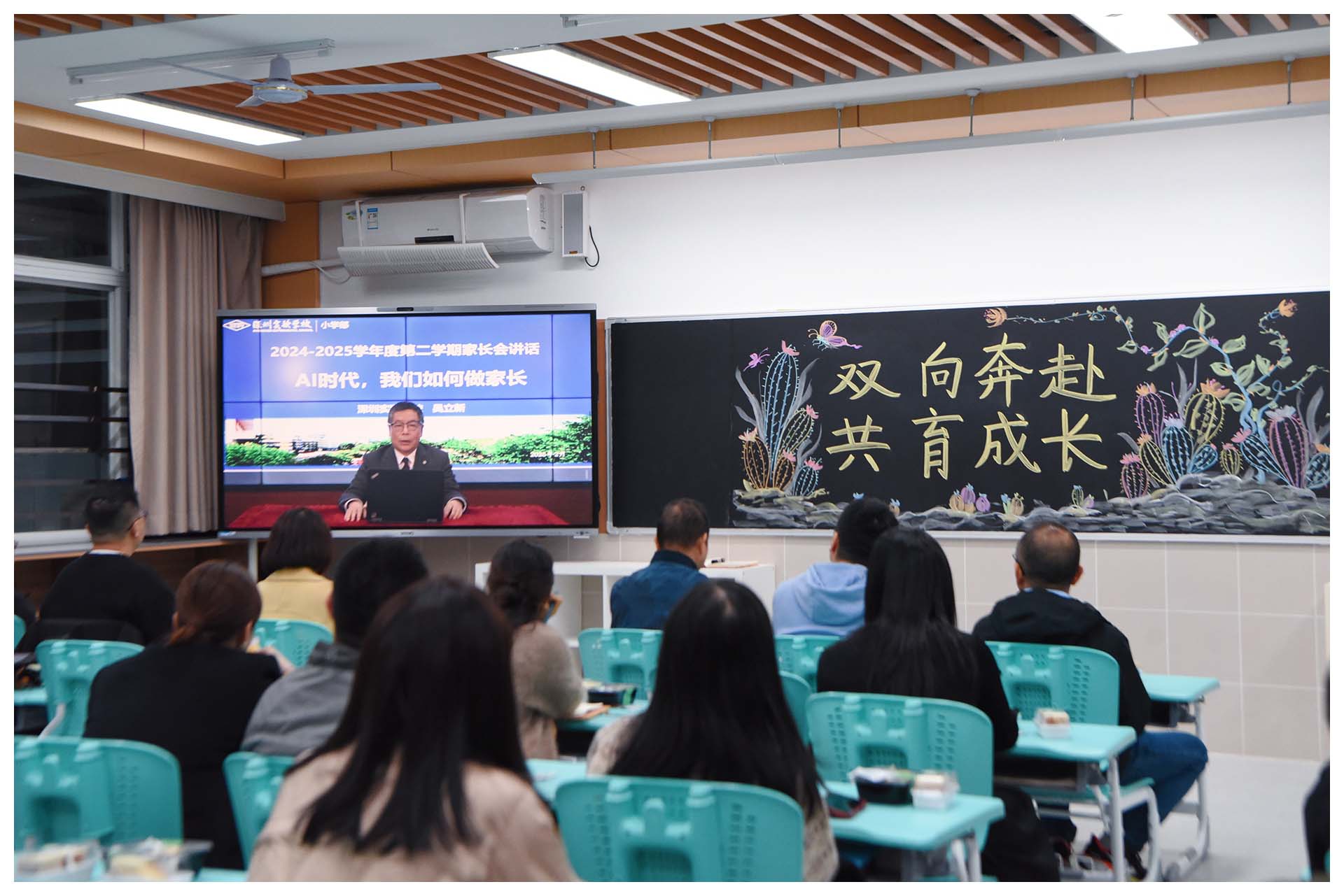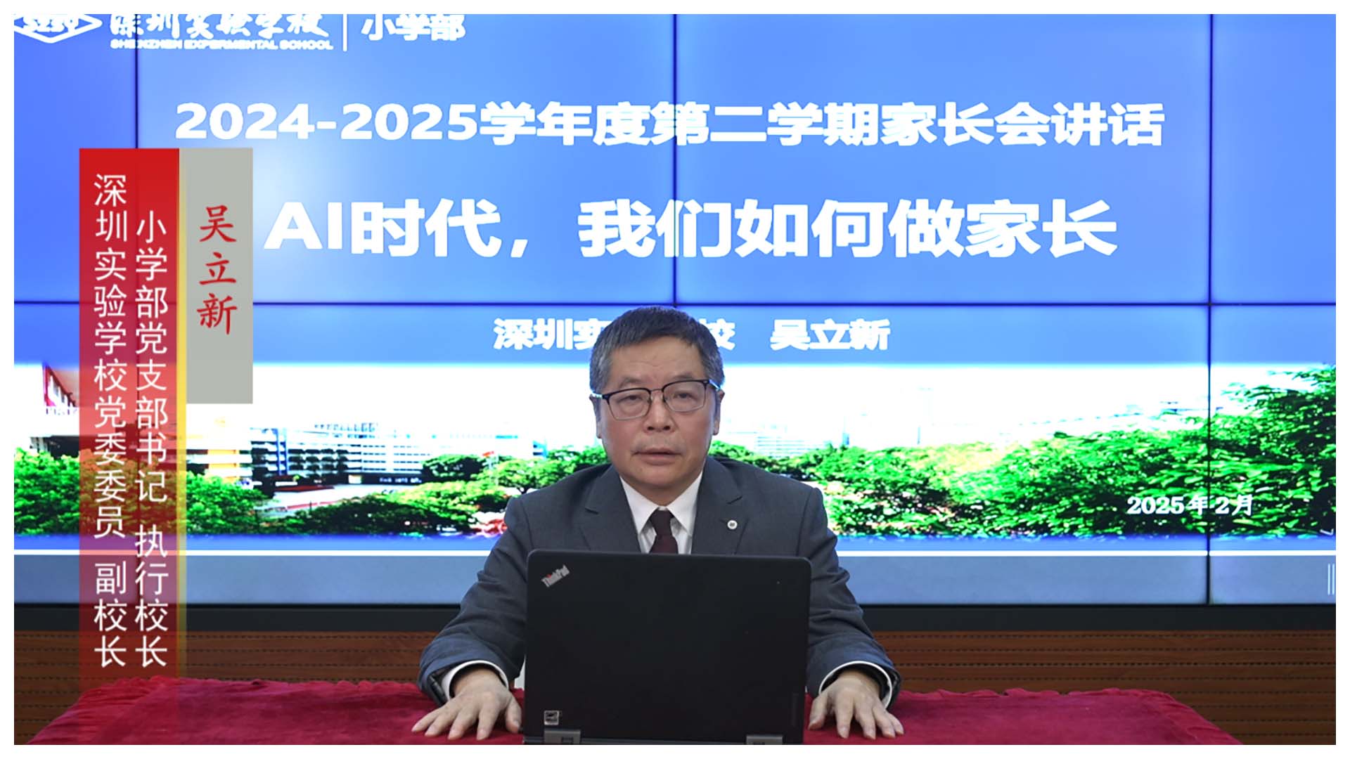 在家长会上,吴立新执行校长以《AI时代,我们如何做家长》为题,为家校共育注入前瞻思考。他指出,人工智能正重塑教育生态:知识垄断被打破,创造力、批判性思维成为核心竞争力。家长需从“分数焦虑”转向“能力培养”,关注孩子的兴趣特长与问题解决能力。