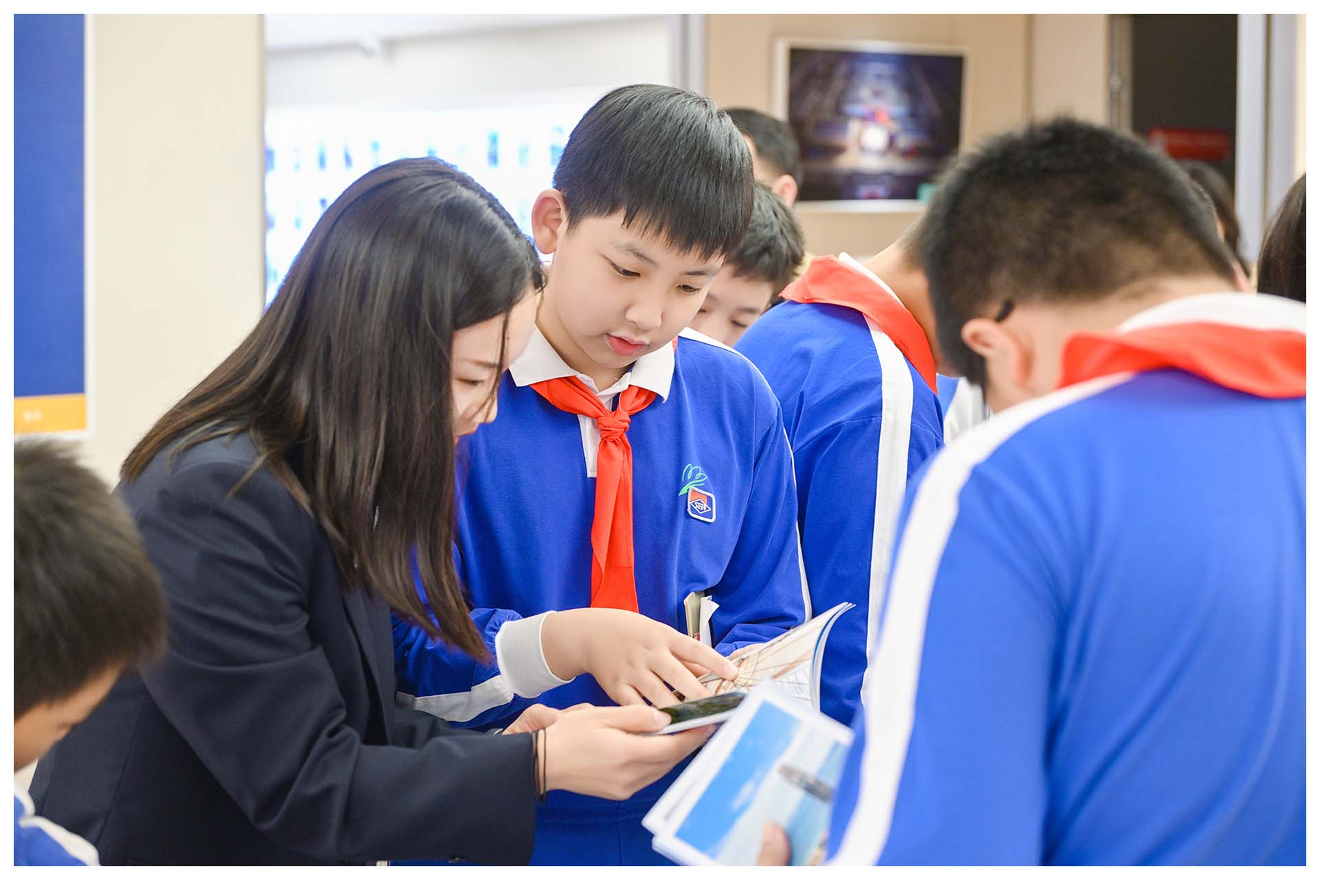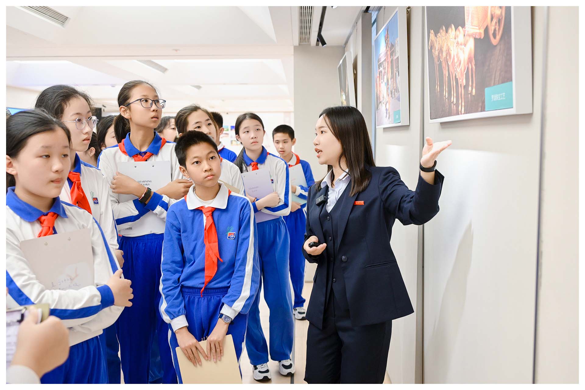 活动当日,阳光倾洒校园。同学们整齐列队,怀揣好奇,搭乘地铁前往党群服务中心。大家有序进入各区域,正式开启充实而有趣的研学之旅。此次活动采用多校联合线上直播形式,全程实时转播。