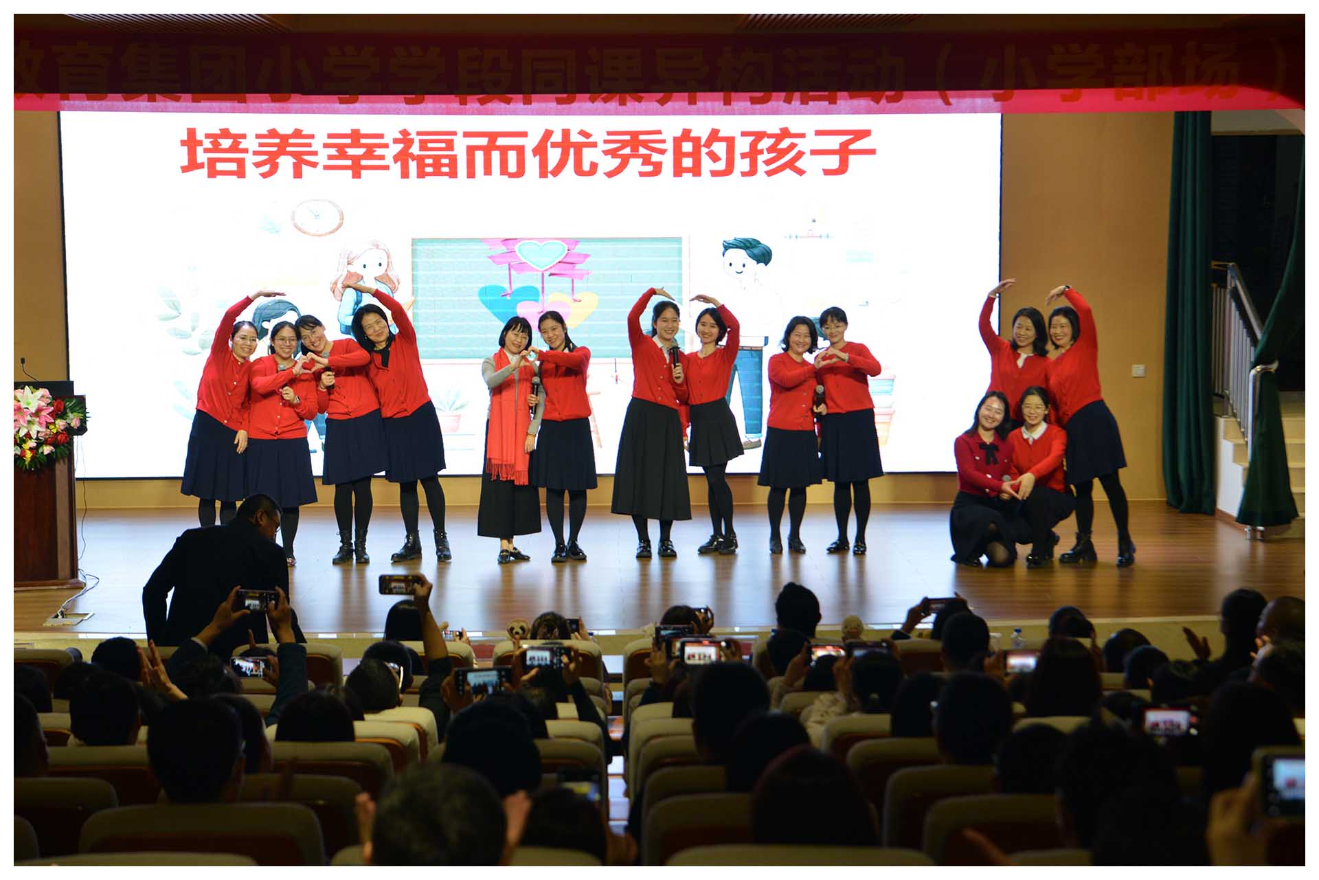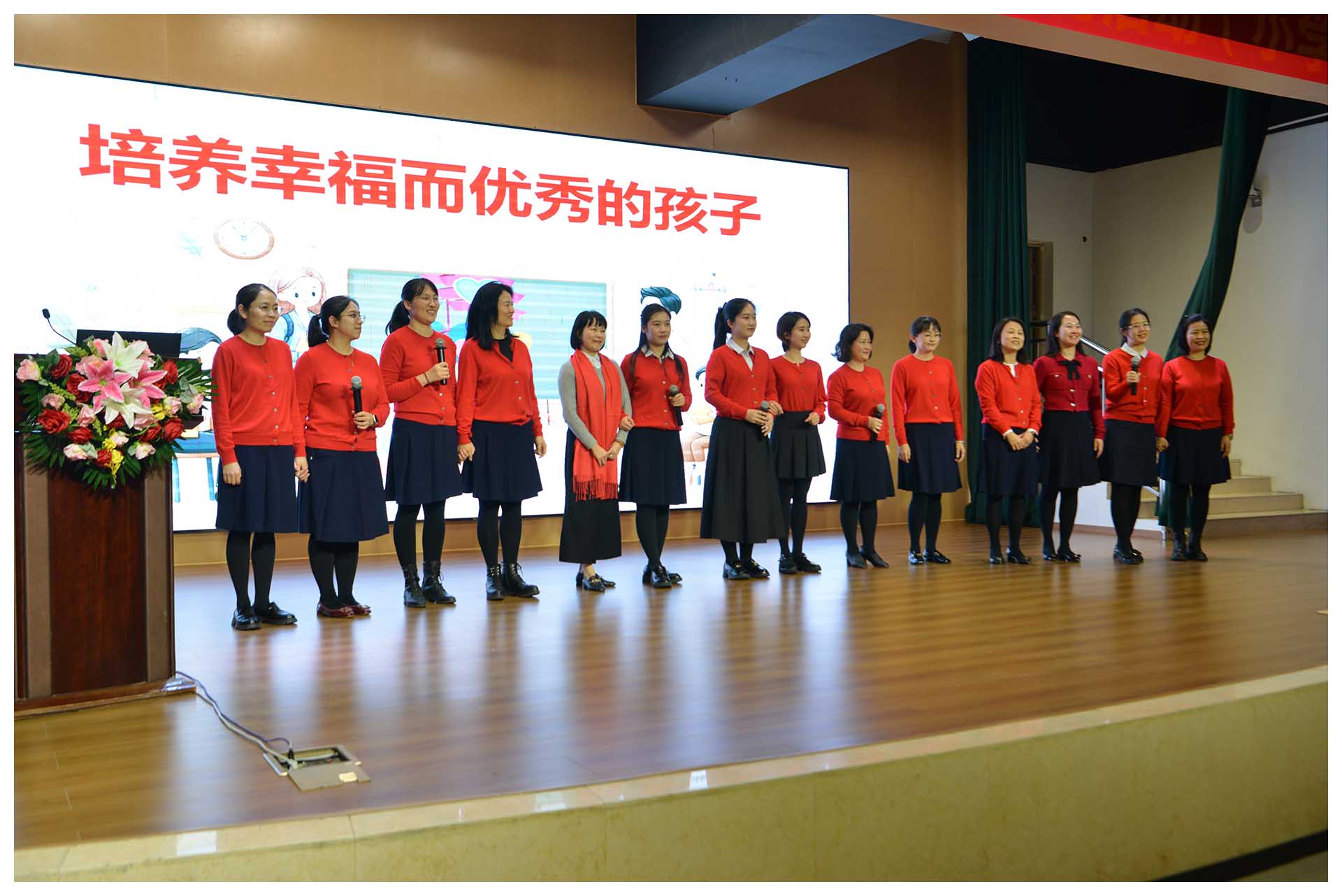 随后,全体全科组教师集体登台,以诗歌朗诵,传达内心的情感,和家长们共同感受教育的力量和美好。朗诵结束,各班家委纷纷上台和老师深情相拥,致以谢意。家庭与学校用爱的纽带紧密相连,共同为孩子撑起一片爱的天空。