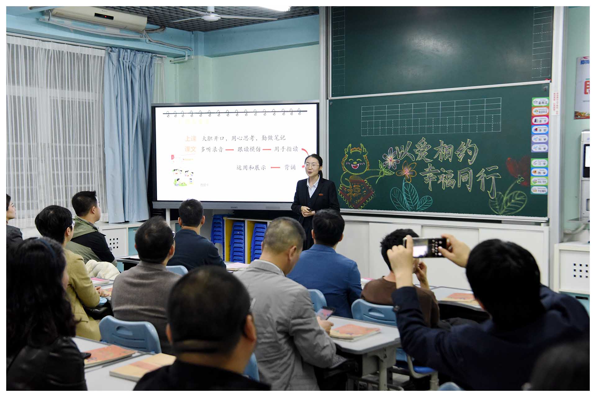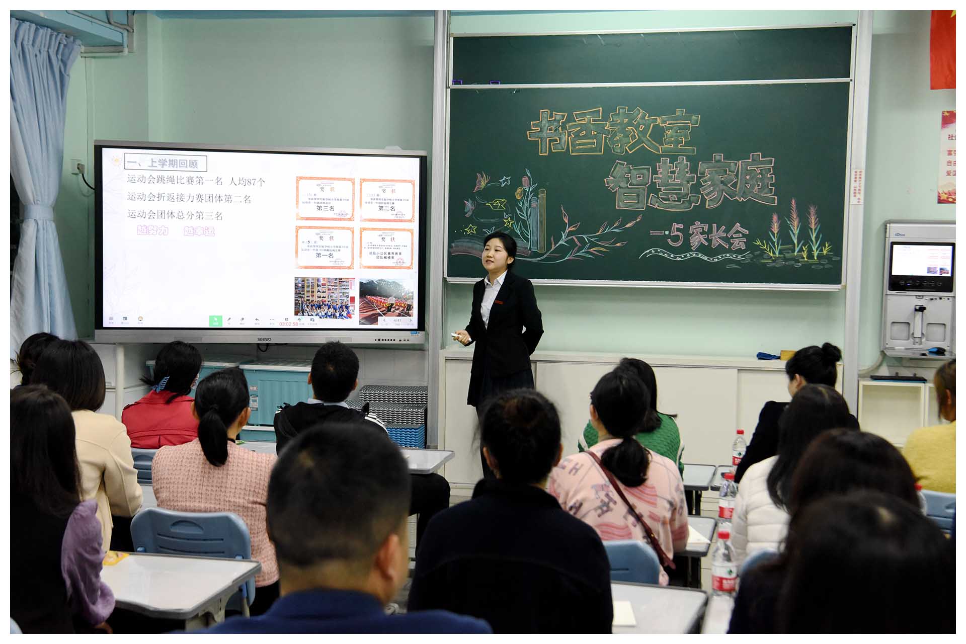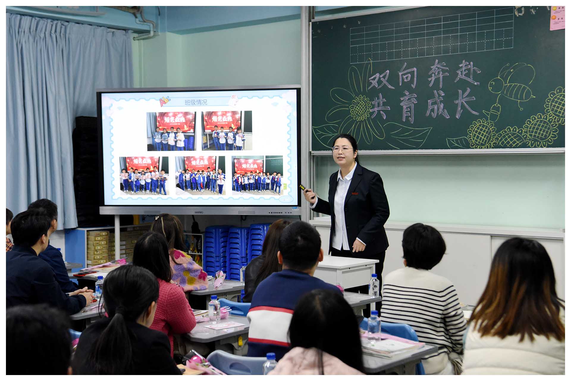 接下来班主任和学科教师与家长进行了倾心交流,老师们围绕着学校健全人格教育理念、学习方法与学习习惯的指导、学科素养的培养、家校共营等主题与家长进行了深入的探讨。教室里掌声不断,笑声连连。