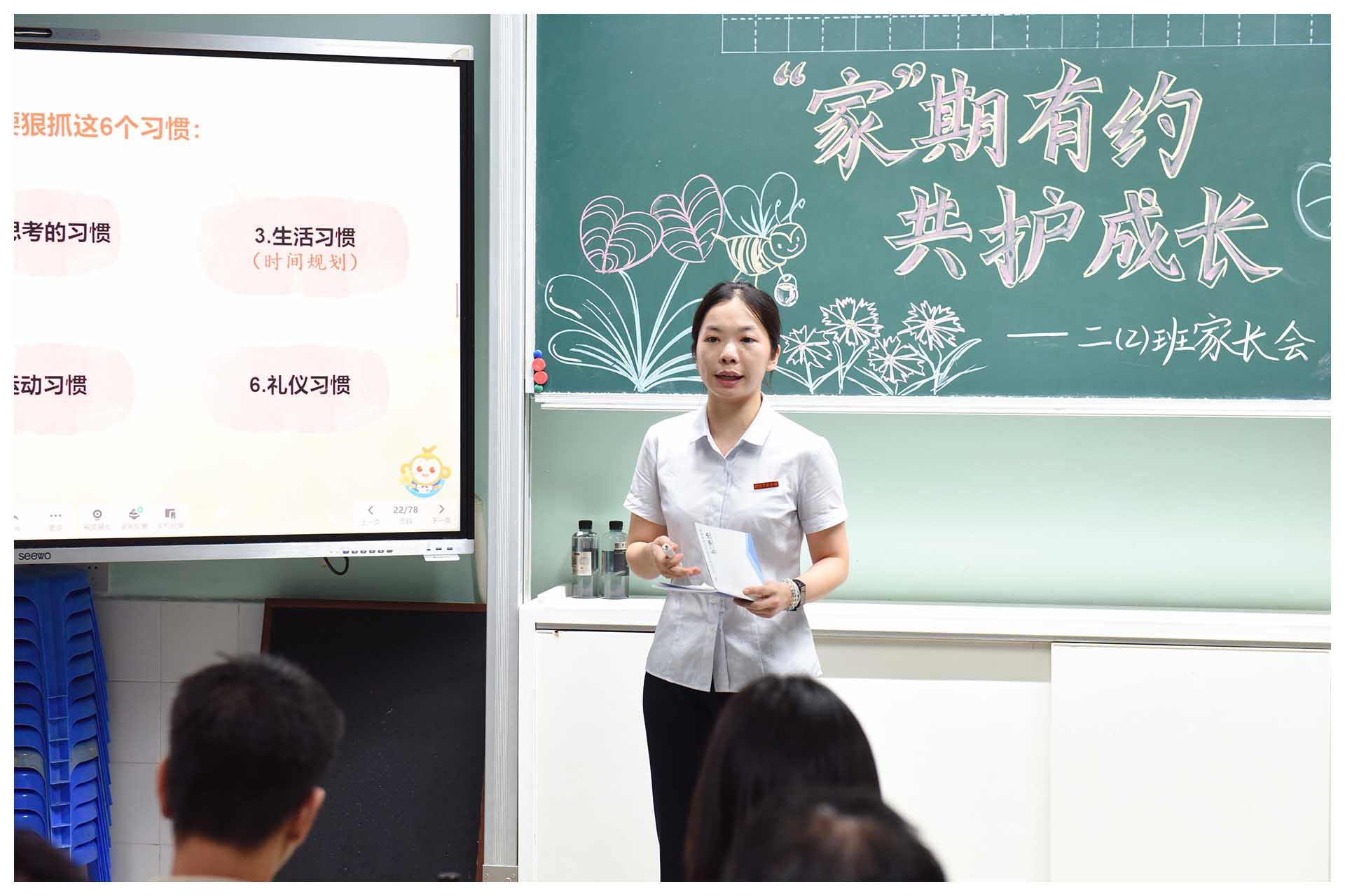 体育学科主任欧天志也详细介绍本学期运动会项目安排,鼓励家长们重视孩子的体能发展,陪孩子养成坚持运动的好习惯。最后的班级交流环节,班主任与科任教师们与家长面对面,围绕孩子的校园适应、行为习惯、情绪状态等话题细致沟通,一句句耐心的解答、一次次真诚的交流,为家校合作筑牢了信任的基石。