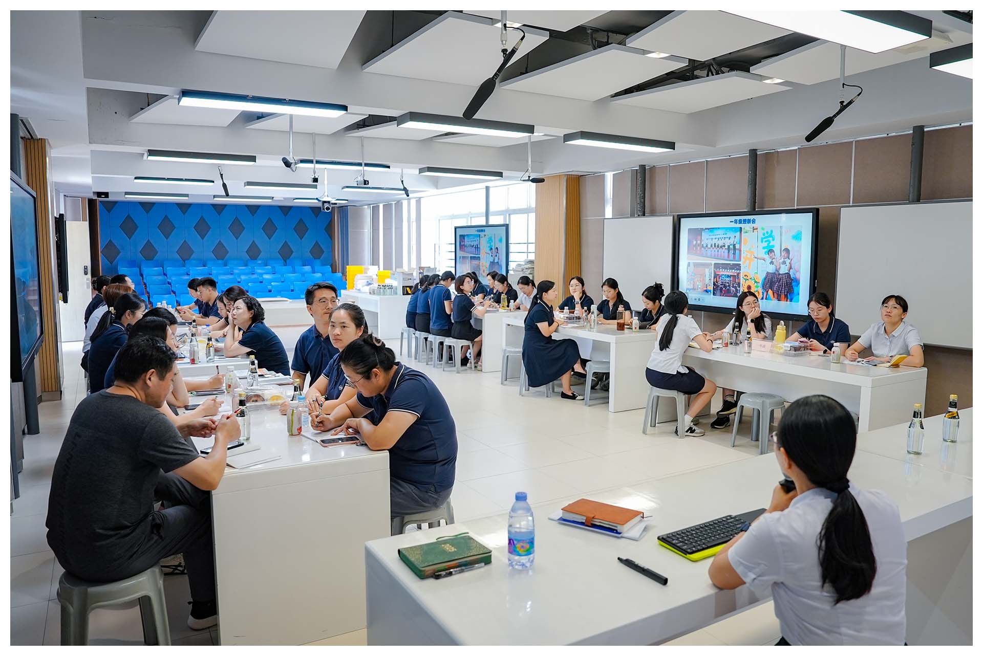 下午2:20,班主任工作培训会在五楼未来教室召开。学生处龚红芳主任与张鸿旭老师分别就新学期班主任工作安排与常规要求作详细说明;青年班主任代表汪彩老师以《读写并行,做成长型班主任》为题作了精彩分享;最后,吴立新校长作总结发言,勉励大家做育人生态园的设计师与工程师,坚持日常要求与爱的滋养相结合,做到立德树人,为党育人,为国育才。班主任团队致力于将管理智慧转化为育人艺术,强化家校协同与团队协作,满怀信心迎接新学期。