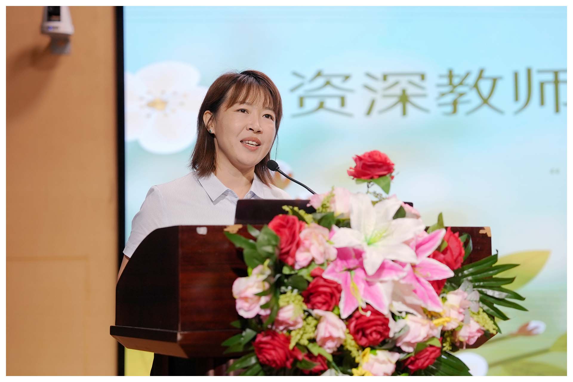 三尺讲台守初心,四季耕耘育桃李。潜心躬耕教坛37年,孙迎春老师迎来了她的荣休时刻,即将开启人生的另一段美好旅程,大会为孙老师举行了温暖的荣休仪式。会上,吴立新校长代表学校为孙老师赠送鲜花和纪念册,感谢孙老师为学生和青年教师成长尽心尽力,为学校发展勇挑重担。同事们献上祝福的掌声。孙老师表达了对学校的感谢和对未来生活的期待,以及对实验未来的期许,真诚的话语凝聚着薪火相传的实验精神。