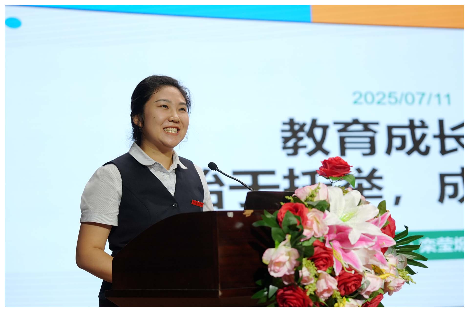 在隆重的颁奖仪式后,青年教师代表栾莹焮老师、美育组艾姗娜老师、语文组邢頔主任和总务处刘洋主任依次上台,分享他(她)们团队台前幕后的教育教学故事。
