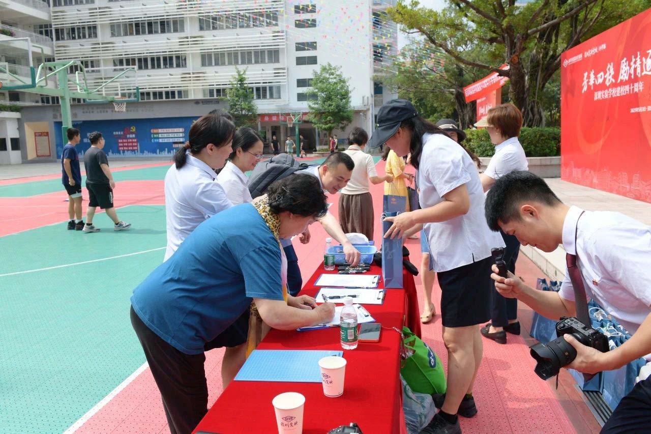 特别欣喜的是,在建校四十周年当天,原深圳实验学校曹衍清校长和冯维悌副校长等老领导带着关怀欣然来到小学部看望教工,勉励小学部勇立潮头把各项工作做得更好。许多荣休多年的实验老前辈也纷纷返回小学部,相聚畅谈实验的昨天和明天;一些不能返回学部的退休领导和教师还打来电话送上关心与祝福。在世界各地求学或工作的校友也返回校园参加篮球友谊赛活动,其中不乏已在国外定居多年这次借着建校四十周年之机专程回国探访校园的一家四口,他们在谈起小学部读书的美好时光时充满着幸福与眷恋。集团党委夏育华书记从百忙中抽空带队来到小学部看望校友并为篮球友谊赛开球。