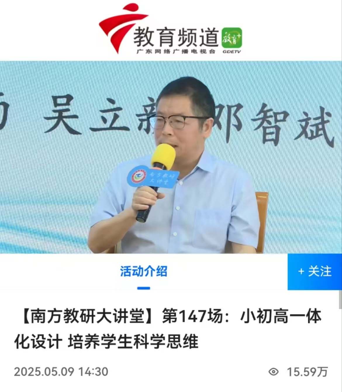 在本次活动中,吴立新执行校长充分发挥核心引领作用,牵头推进完成小学部承担的商汤场馆建设和科技馆签约两大重点项目,成功搭建起与 AI 领域头部企业、深圳顶级场馆的合作桥梁,为学校未来在科技创新教育、高端文化交流等领域的深度发展开辟了新路径。同时,吴校撰写了《小学部四十年办学总结报告》和《办好人民满意的中国式现代化学校》两篇文章,形成了小学部课程建设、五育并举融合课程和全科、科创特色课程的体系构建提炼和特色总结。在此期间,吴校还应广东省教育科学研究院的邀请,抽空到“南方教研大讲堂”宣讲深圳实验学校一体化科创教育培养人才的经验与做法,全国现场在线观听教师近16万人。