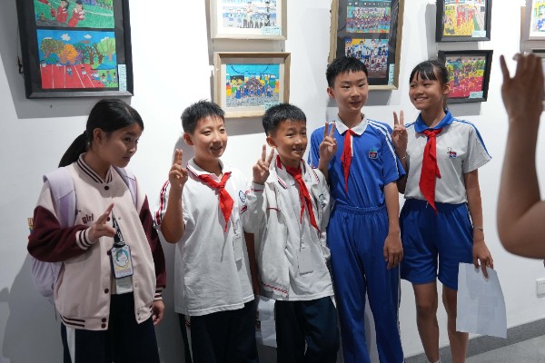 暮色中的实验园,晚风拂过美术馆外墙上爬山虎绘就的图案。这里正在书写的,从来不只是庆典华章——正如五年级学生安心在观展笔记上写到:“写生课观察叶脉的纹样,午唱时歌咏美好的山河,这就是我们的‘美育一件事’。”
