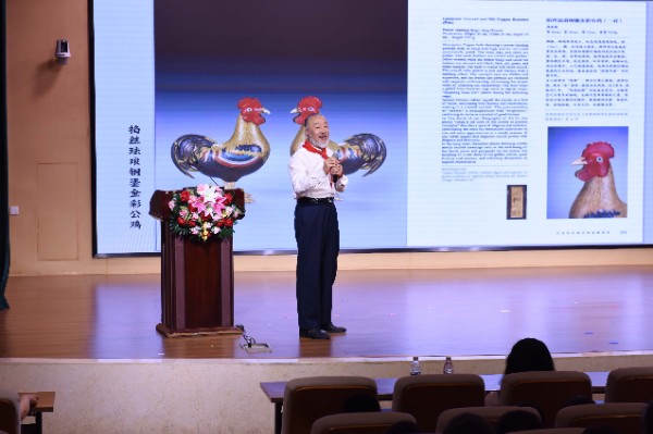 三三天后的报告厅内,美育节六年级专场讲座“万千华彩·明清御用珐琅器”拉开了帷幕,一场传统纹样探秘之旅就此展开。垽宝轩美术馆邱建华馆长展示着华美的珐琅器图片,带领孩子们走进纹样的千年故事里: