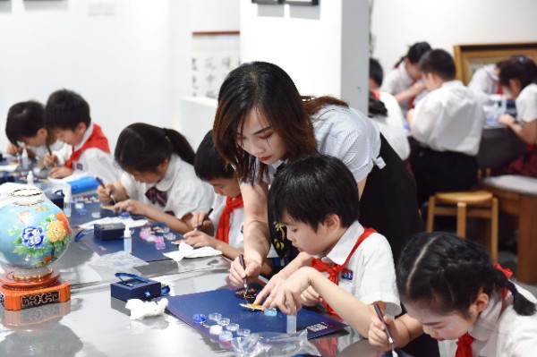 接下来的互动问答和有奖竞猜环节,将现场气氛引向高潮与尾声。华夏的历史,文明的密码,在万千华彩的珐琅纹样中苏醒。这场珐琅探秘之旅,让同学们明白:最美的中国色,不只封存在国宝文物里,更流淌在我们创造未来的笔尖上!