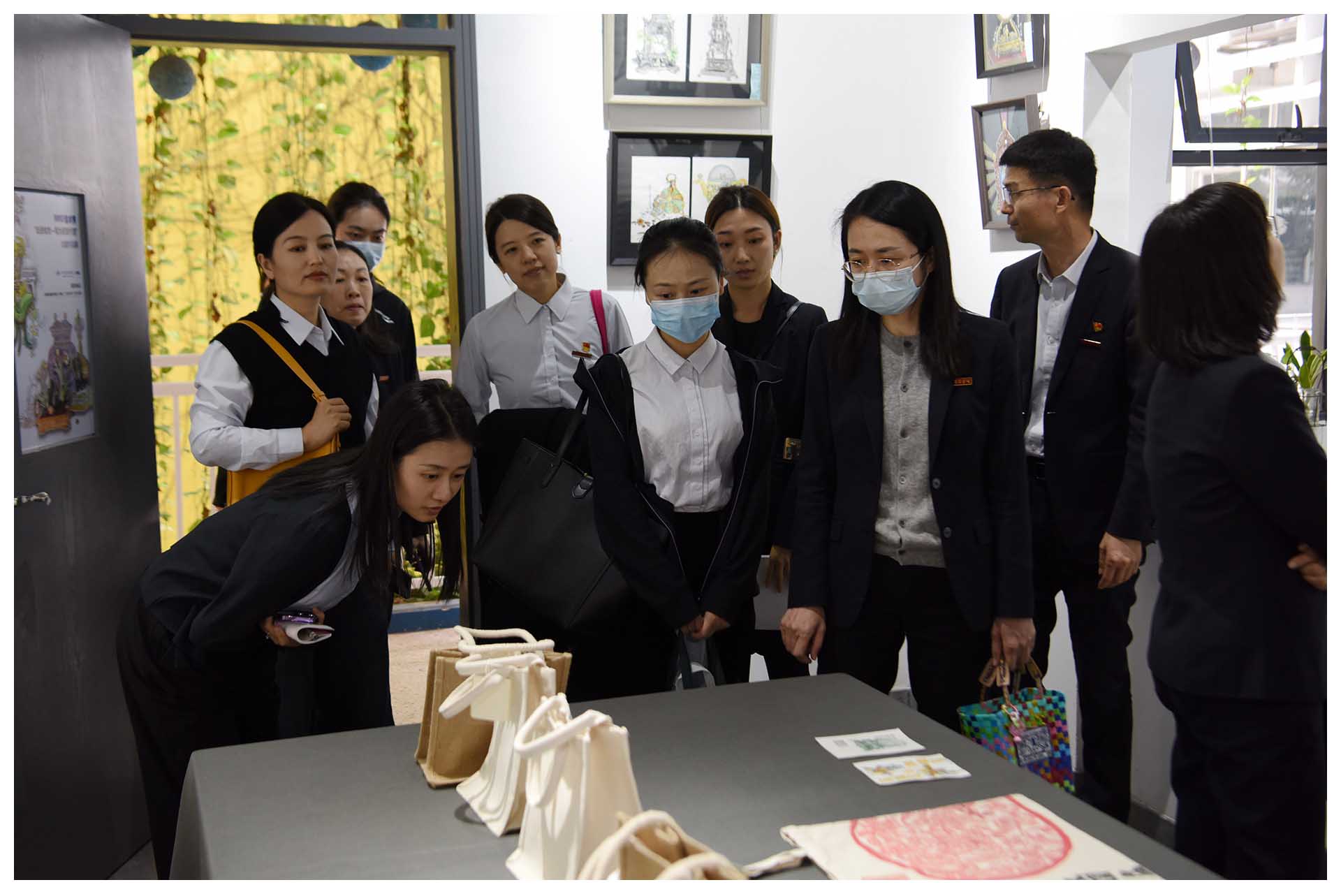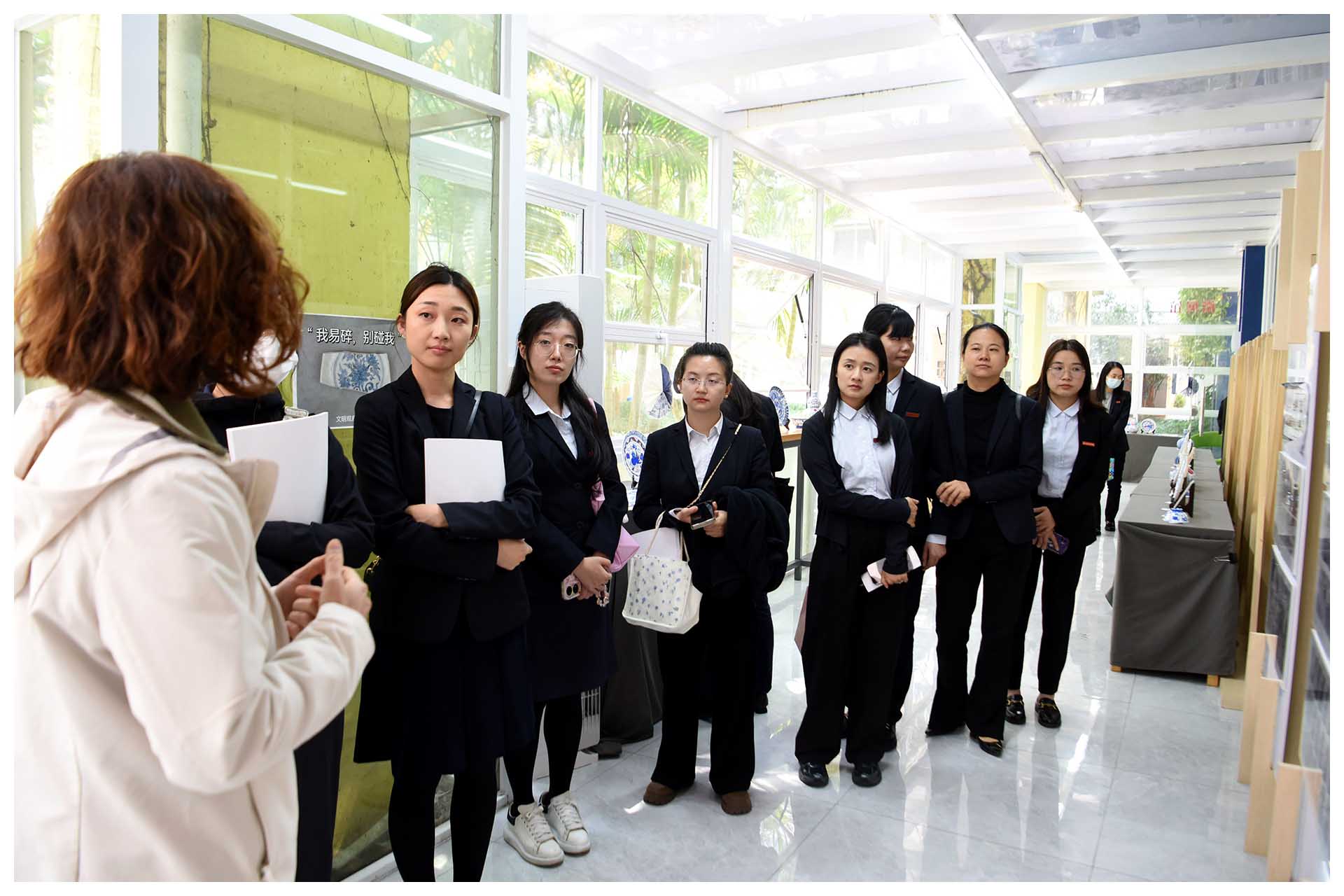 参观团队一行人首先抵达了一楼的微展馆,这里充满了艺术的氛围。美术陈蓉老师热情而专业地为他们讲解,引领着大家一同欣赏全科“瓷”课程作品。在陈老师的细致解说下,这些作品仿佛被赋予了生命,每一个细节都透露出学生们的匠心。参观者们纷纷驻足欣赏,对全科“瓷”课程的独特魅力与深厚内涵表示出浓厚的兴趣。