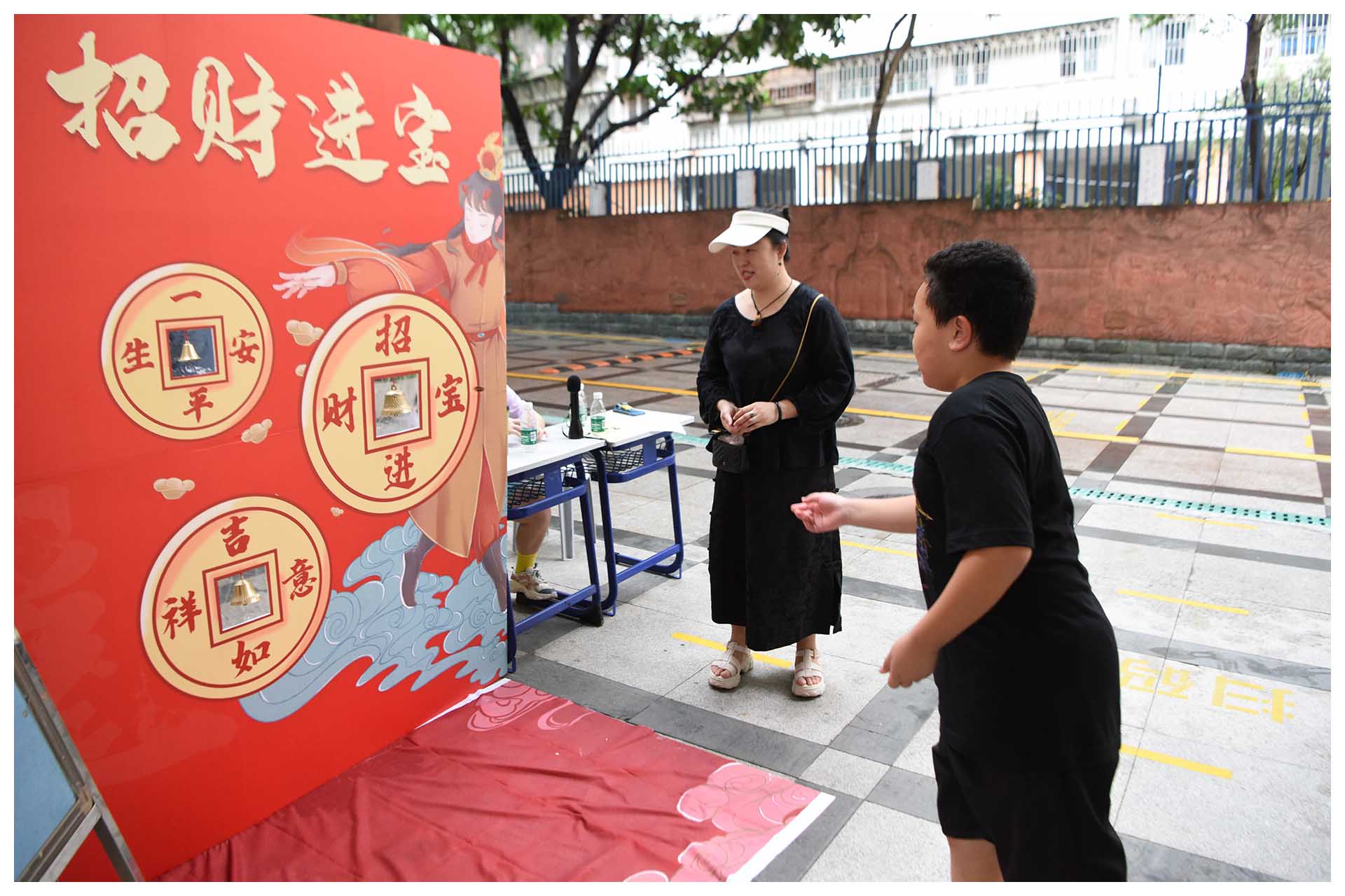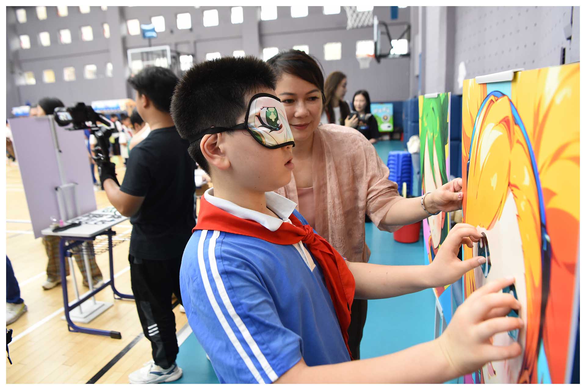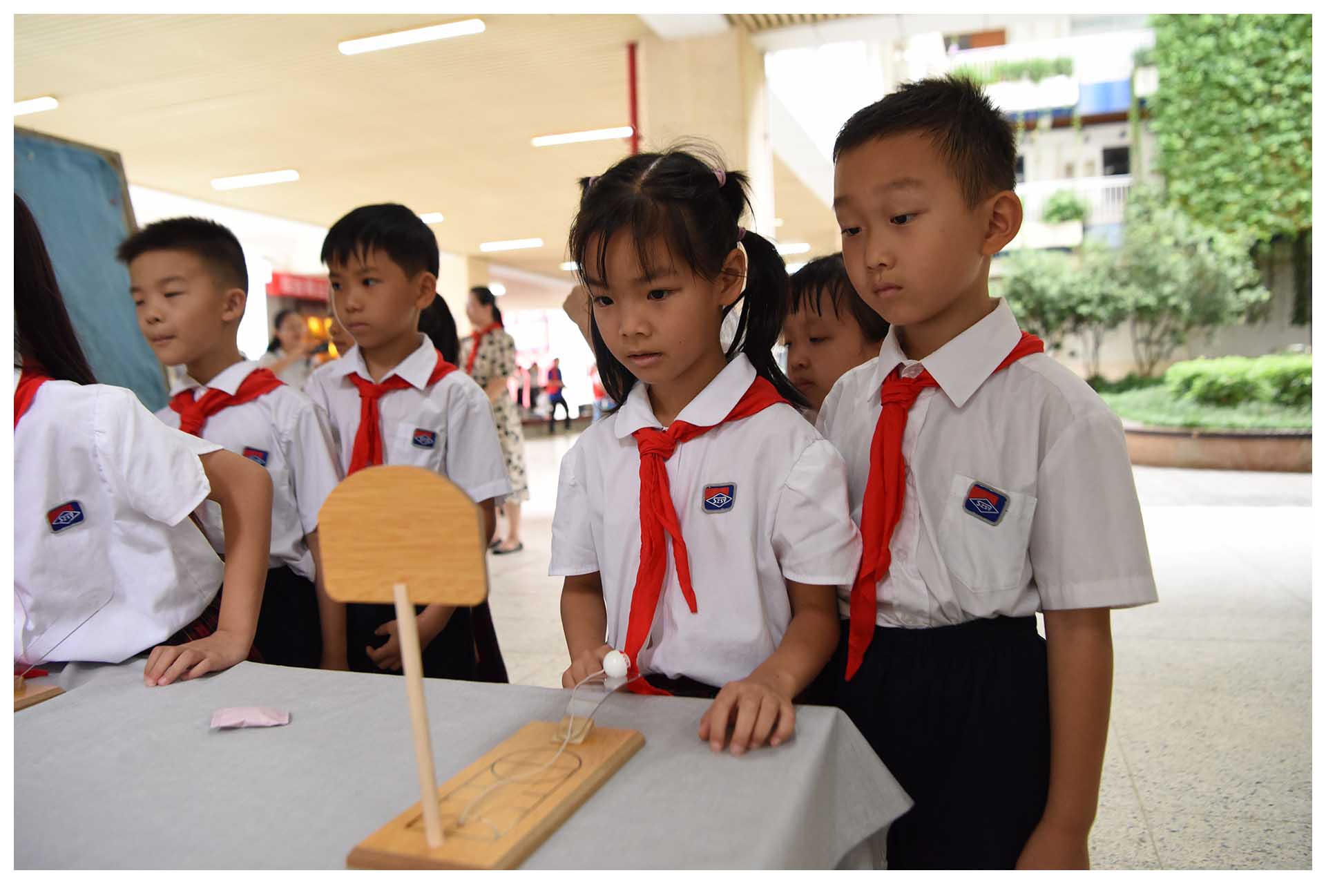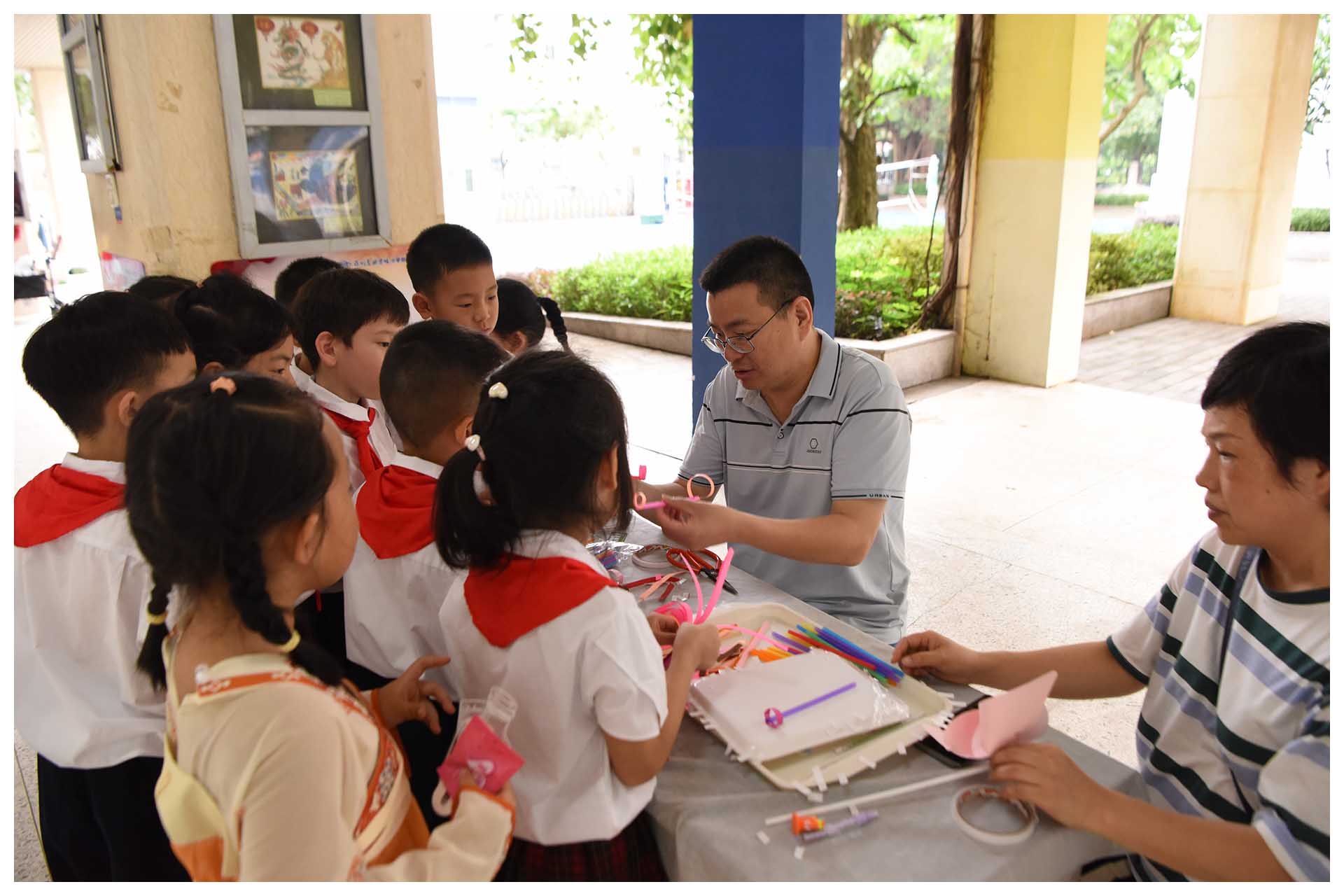低年级的孩子们进入一楼架空层的游戏区,开始了他们的欢乐时光。“夹玻璃珠大赛”、“打桌面保龄球”、“欢乐跳房子”、“智慧趣味拼图”、“编制端午五彩绳”、“手工DIY干花书签”、“炫彩风车”、“不可思议吸管飞行器”、“吹球大挑战”、“射箭”、“垃圾分类沙包投掷”、“新式套圈”、“巧手投壶”、“探索水拓画之美”、“彩绘曼陀罗心理画”等游戏让孩子们乐此不疲,不仅增进了同学们的互动交流,锻炼了身体协调性,提高了分析问题、解决问题的能力,还培养了团队合作精神,同时也让孩子们了解了传统娱乐方式,在游戏中体验快乐。他们的欢笑声和喝彩声此起彼伏,为活动增添了无尽的活力。