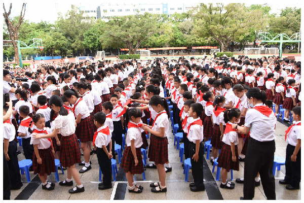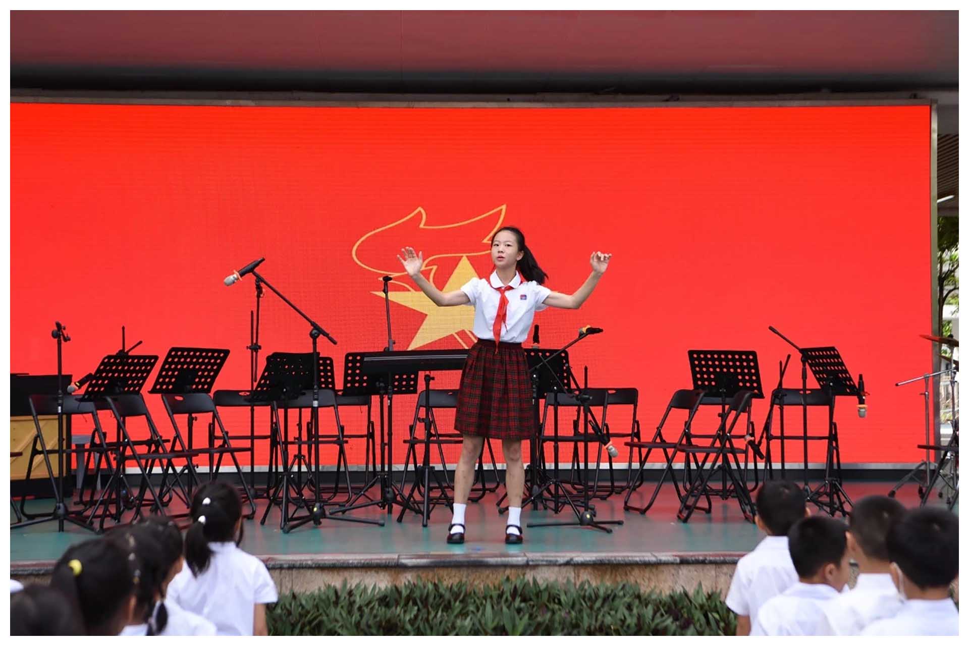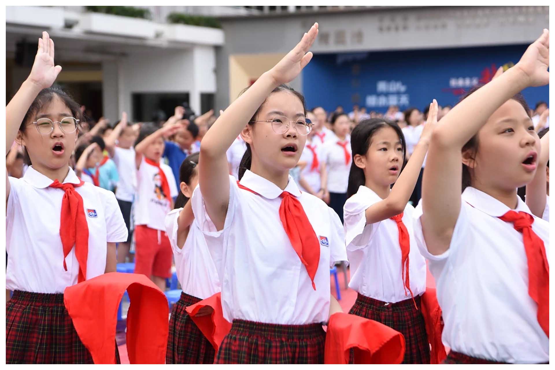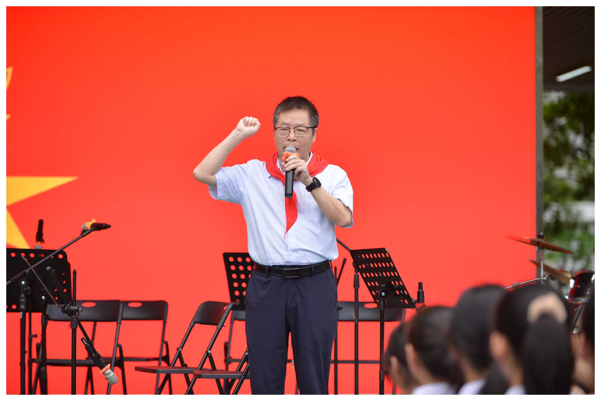 随后,在小学部党支部书记、少工委主任吴立新校长的坚定领呼下,队员们“时刻准备着”的激昂声音回荡在校园的每一个角落,表达了他们对祖国的热爱和未来的憧憬。