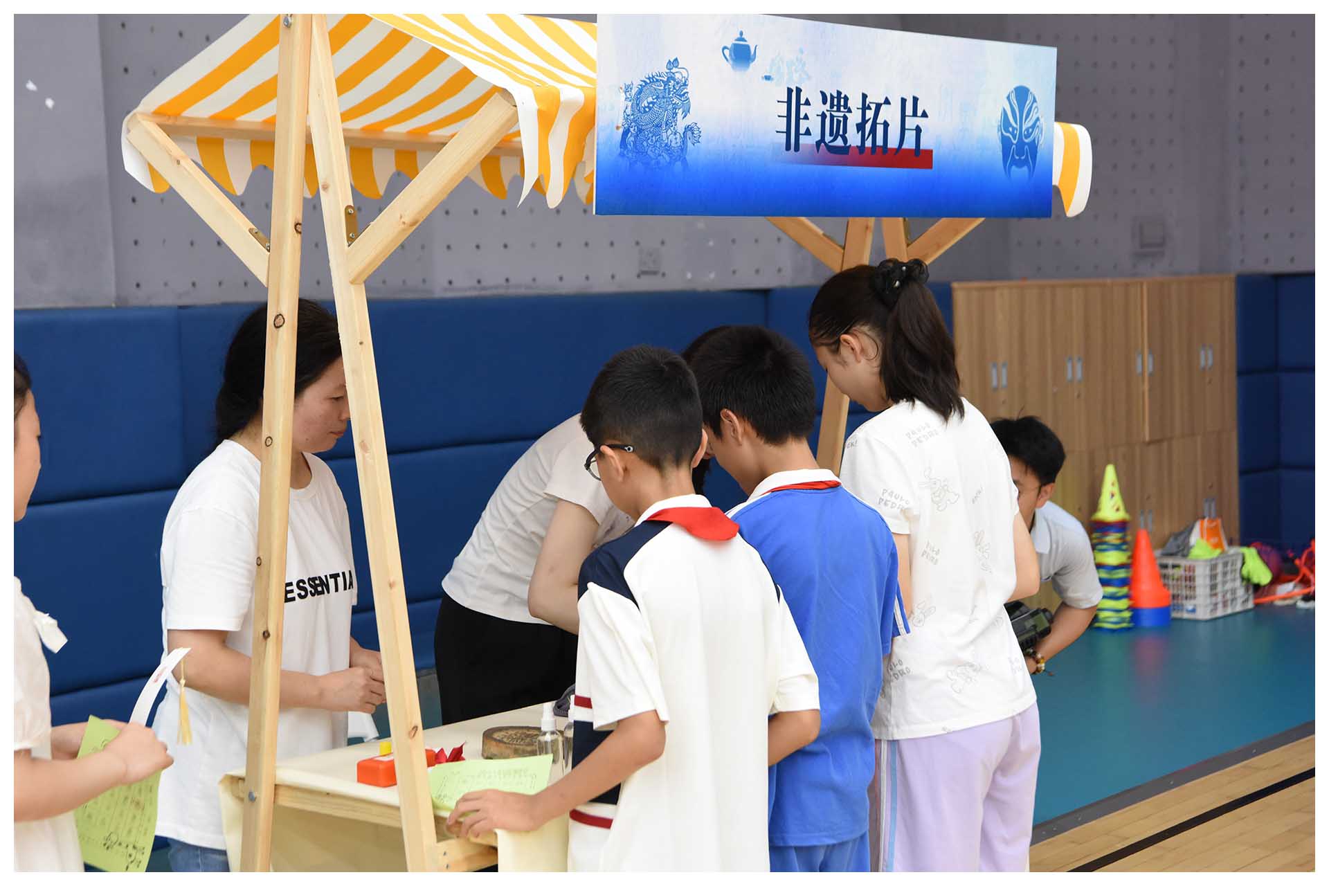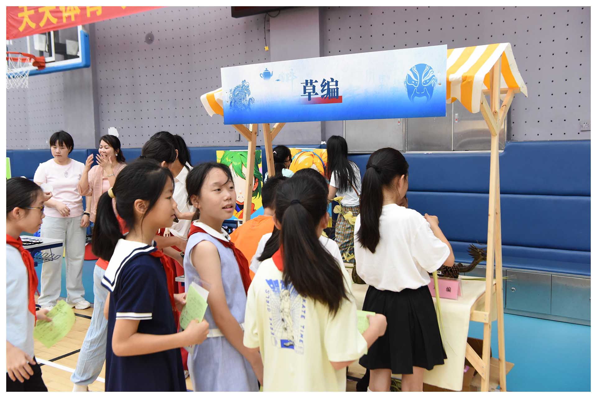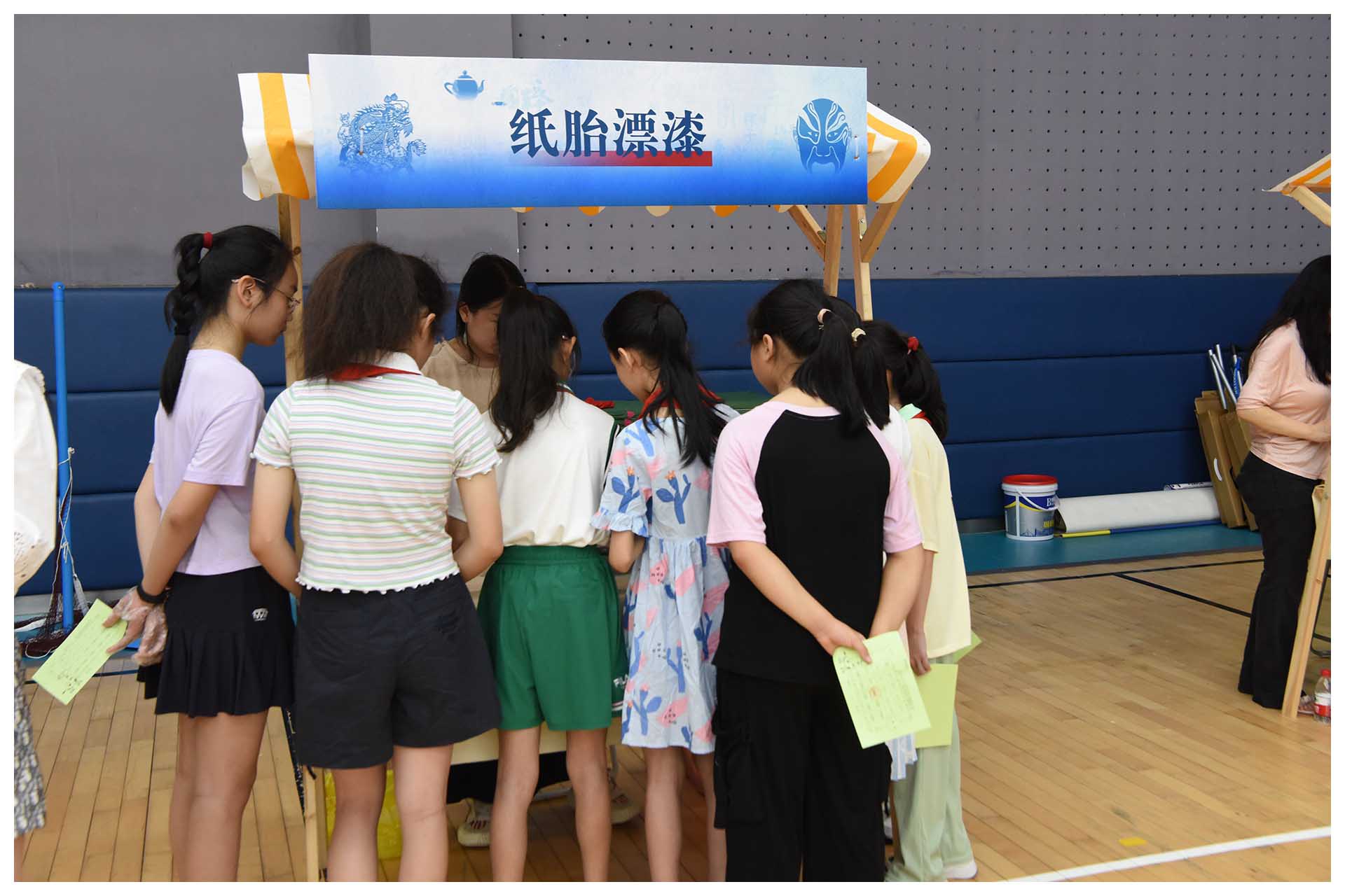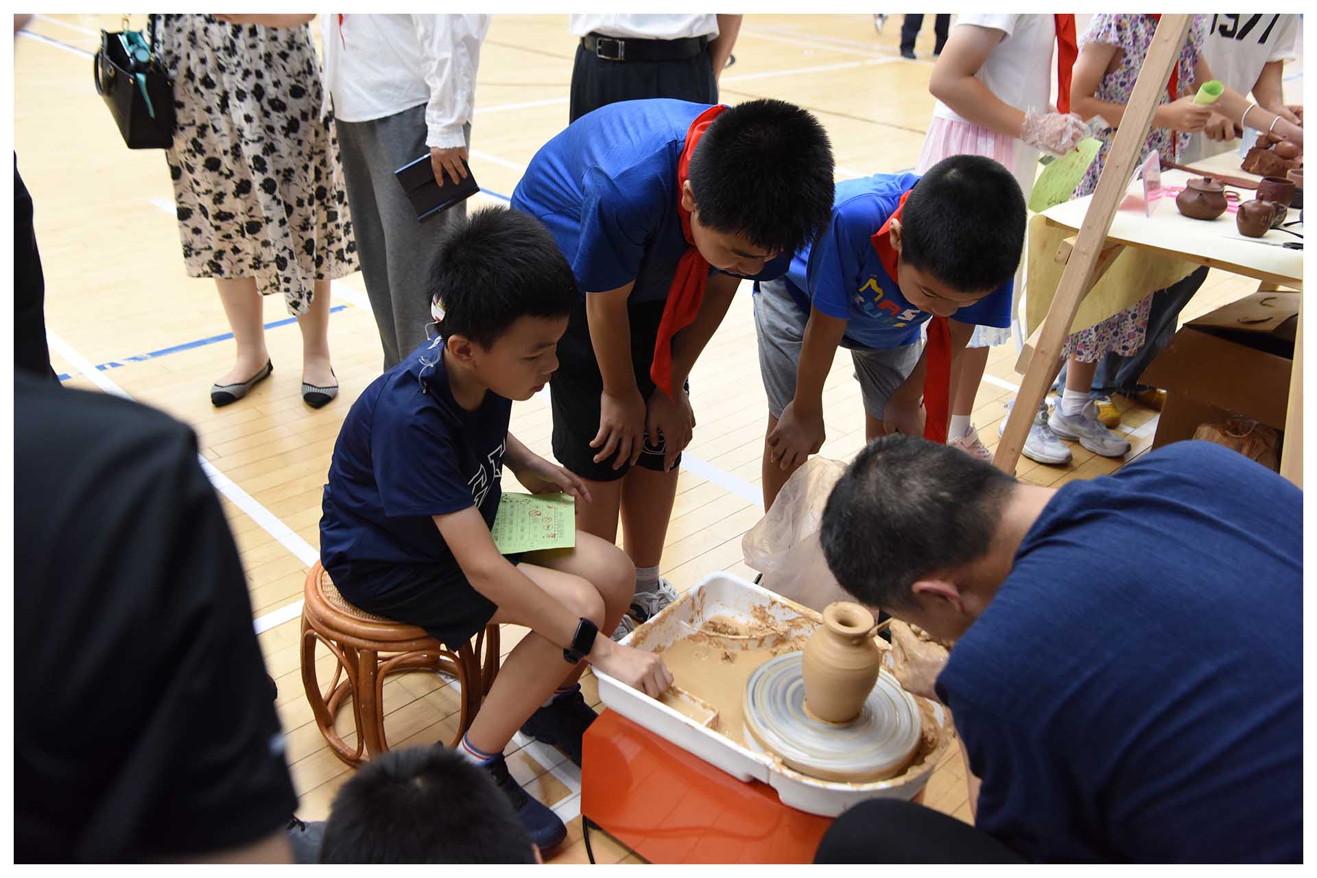 高年级的同学们除了参与“球球历险记”、“挑战数数字”、“盲人排雷”、“捕鱼达人”、 “抽签猜谜”、“投币祈福”、“emoji猜成语”、“公鸡下蛋”、“蒙眼贴五官”、“飞盘高手”等趣味十足的游园游戏,还前往体育馆、社团墙、中国墙,体验了丰富多彩的非遗文化活动。潮州(林氏)工夫茶艺、草编、剪纸、非遗拓片、陶艺拉胚、雕版套印、传统篆刻、纸胎漂漆、核雕、盘扣技艺等传统文化项目让同学们感受到了中国传统文化的独特韵味,进一步加深了对中国传统文化的了解和喜爱。