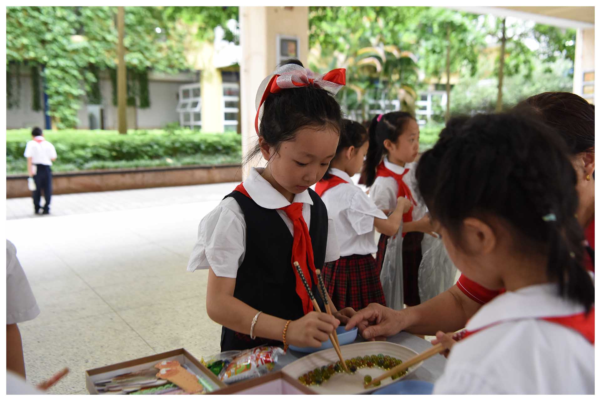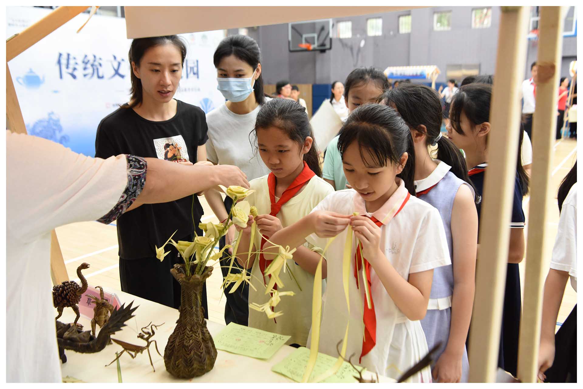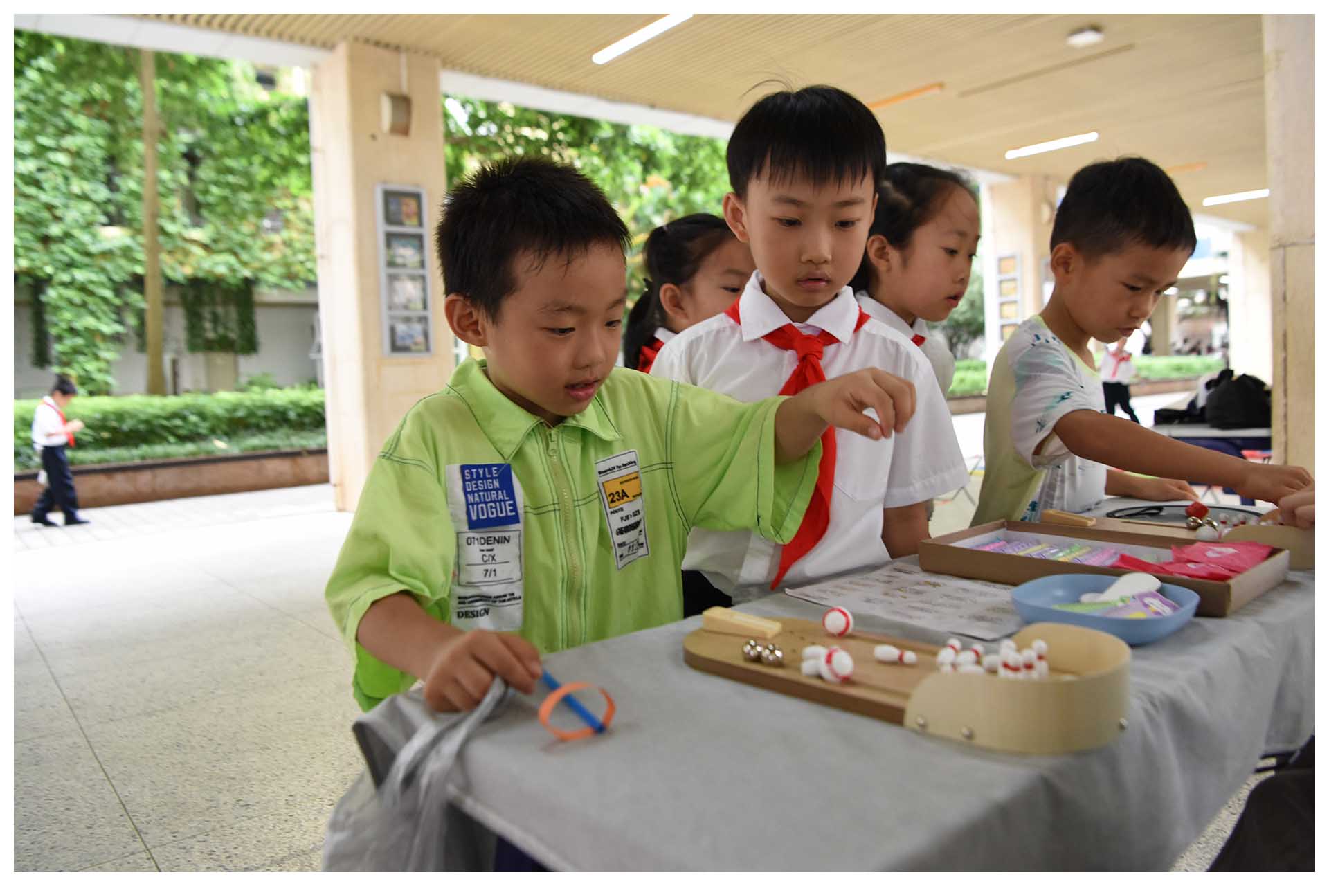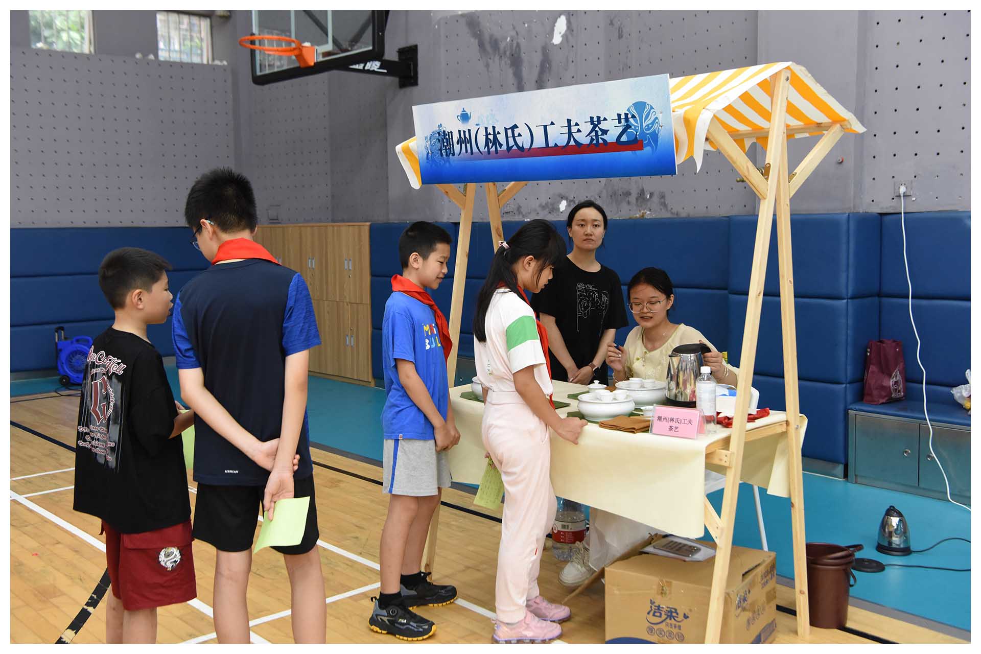 高年级的同学们除了参与“球球历险记”、“挑战数数字”、“盲人排雷”、“捕鱼达人”、 “抽签猜谜”、“投币祈福”、“emoji猜成语”、“公鸡下蛋”、“蒙眼贴五官”、“飞盘高手”等趣味十足的游园游戏,还前往体育馆、社团墙、中国墙,体验了丰富多彩的非遗文化活动。潮州(林氏)工夫茶艺、草编、剪纸、非遗拓片、陶艺拉胚、雕版套印、传统篆刻、纸胎漂漆、核雕、盘扣技艺等传统文化项目让同学们感受到了中国传统文化的独特韵味,进一步加深了对中国传统文化的了解和喜爱。