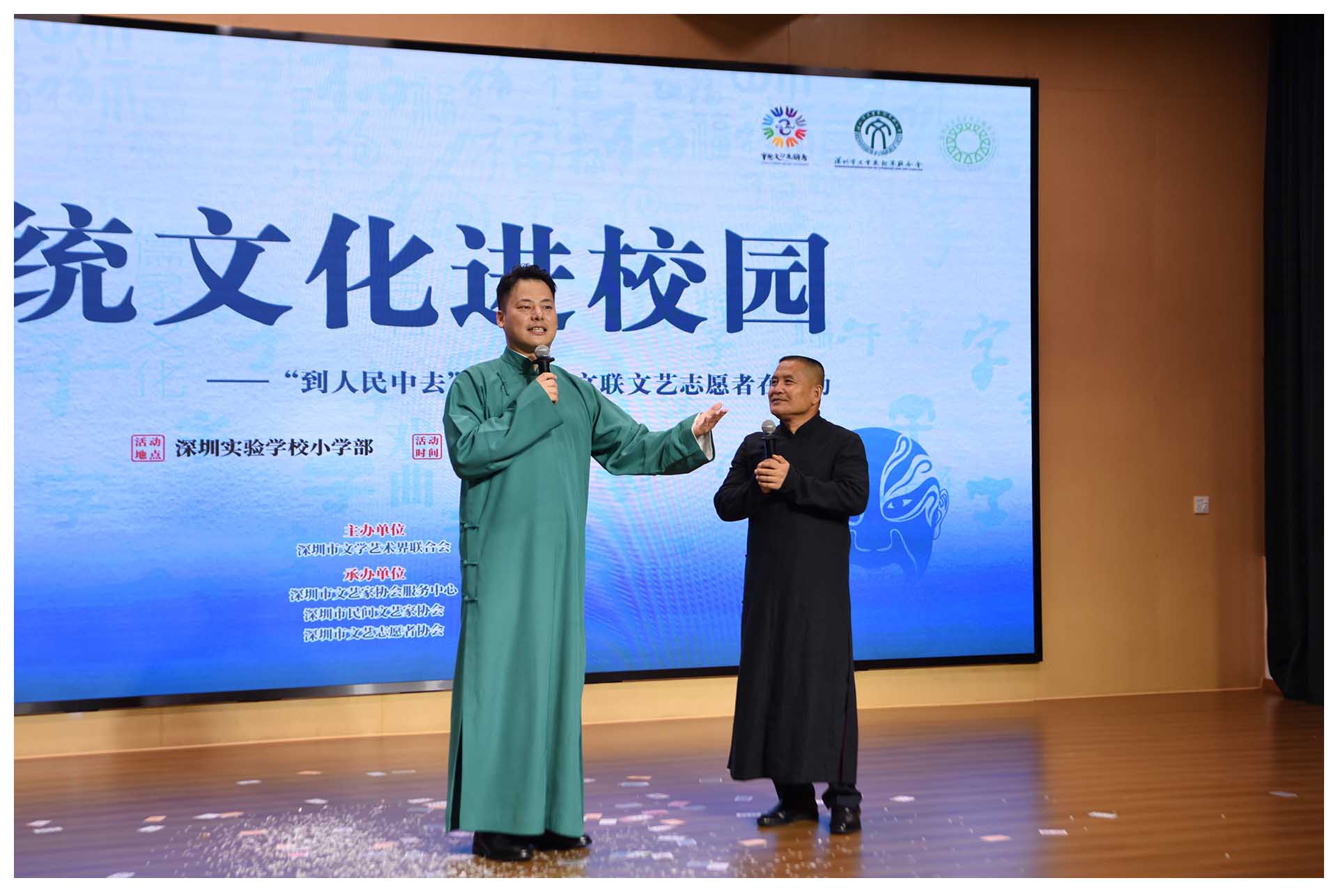 深圳市文联党组成员、专职副主席金琇,深圳市文联副秘书长、市文艺家协会服务中心主任杜娟等领导带队,率领一众艺术家来到小学部,为孩子们带来了一场精彩纷呈的传统文化节目。表演融合了川剧、魔术、口技、双簧等多样传统文化,向同学们展示了中华文化的博大精深。