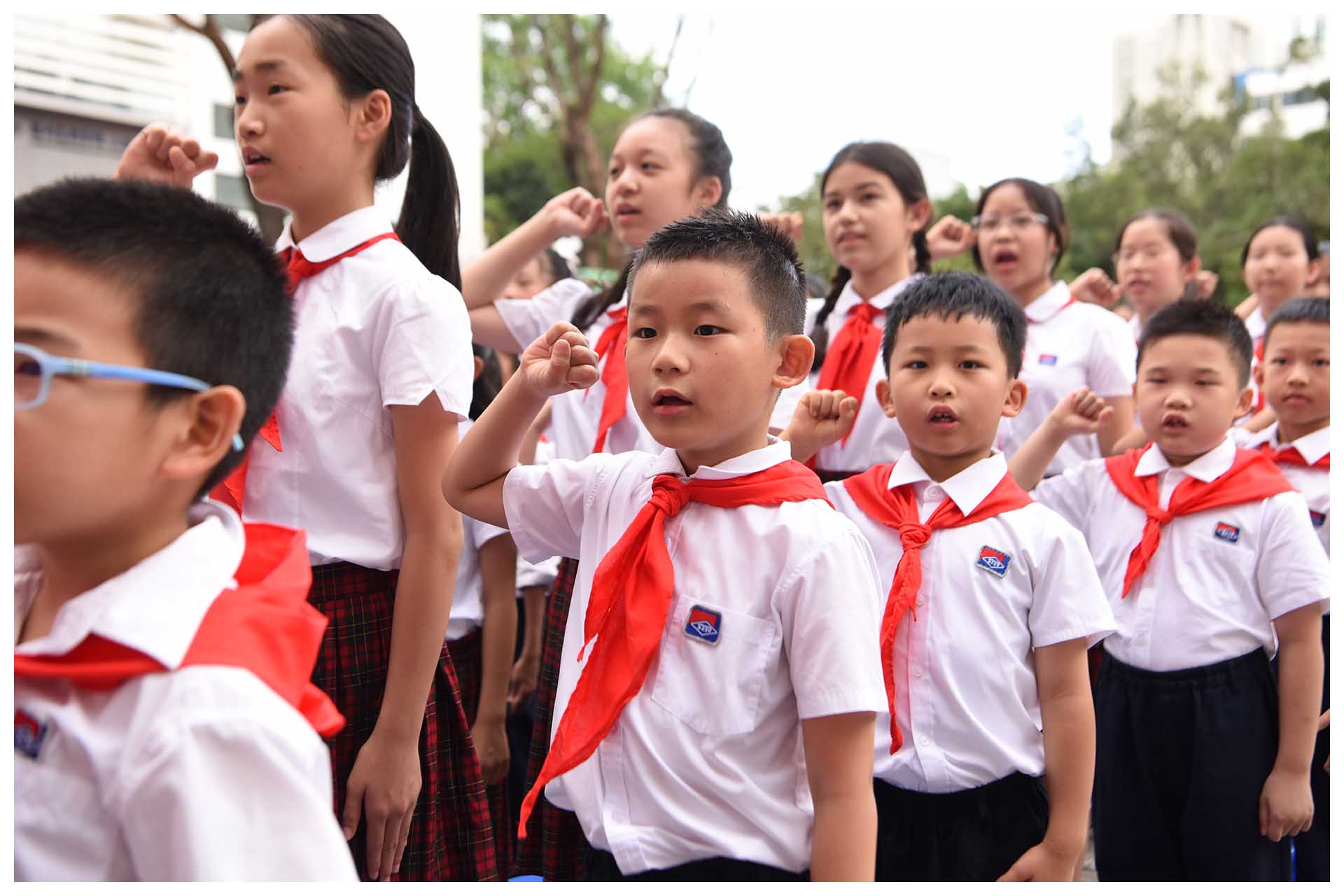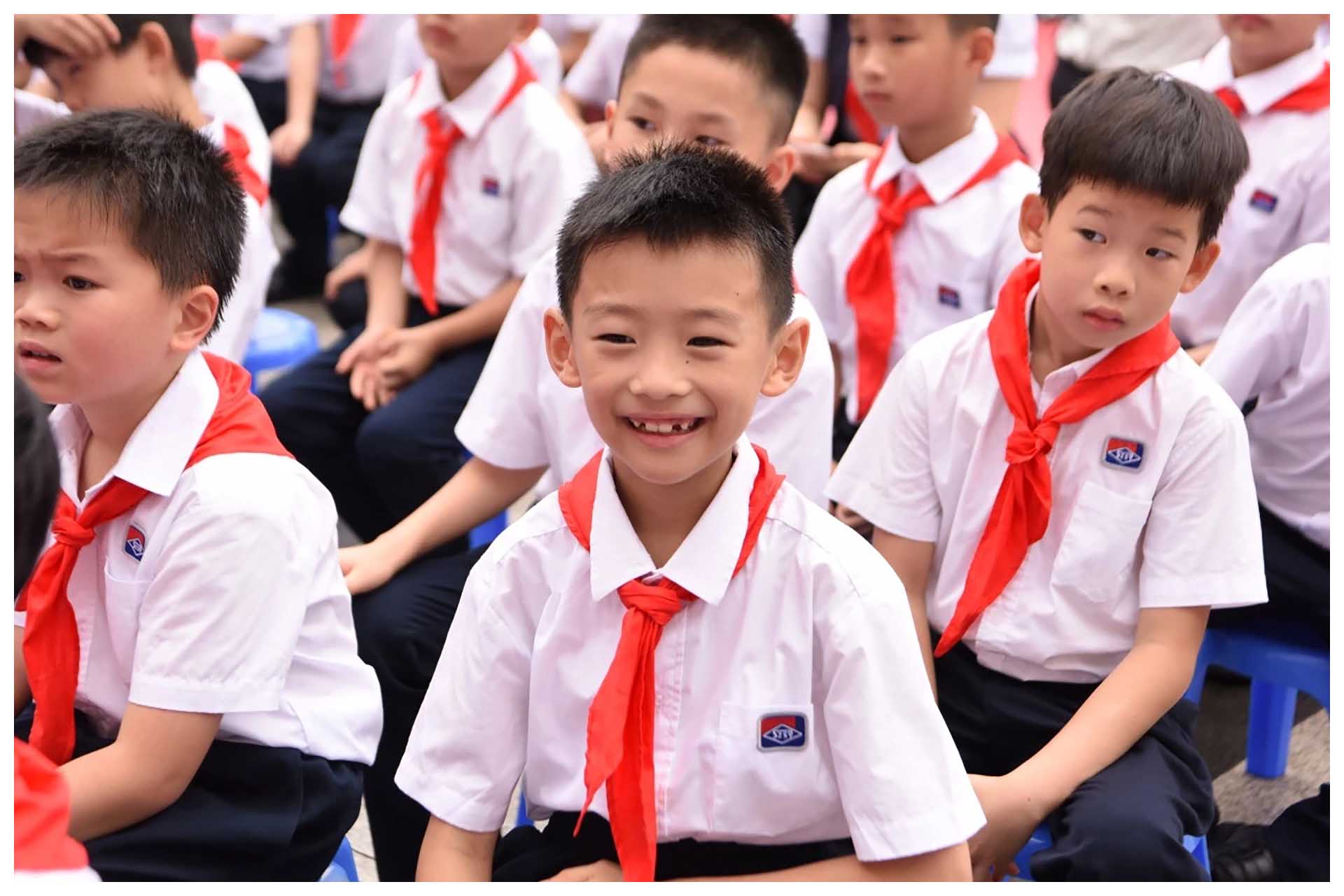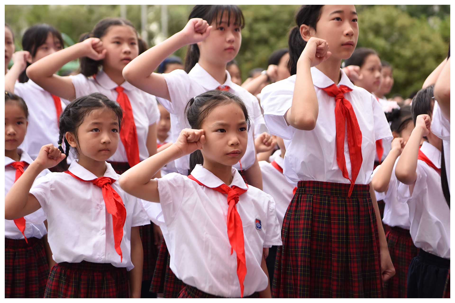 当红领巾轻轻系在他们的颈间,那一刻,他们正式成为了光荣的中国少年先锋队队员。