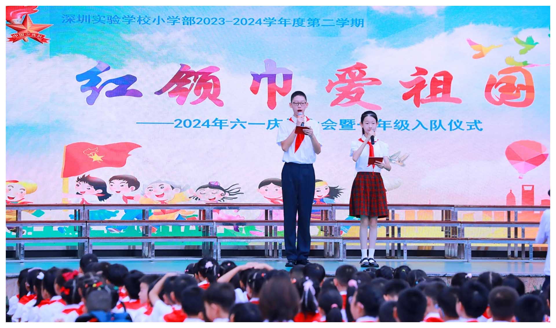 雨过天晴,笑语盈盈。5月31日上午,深圳实验学校小学部隆重举行了2024年“六一”国际儿童节庆祝大会暨一年级入队仪式,深圳实验学校党委夏育华书记带领集团干部,和小学部全体师生欢度儿童节日。