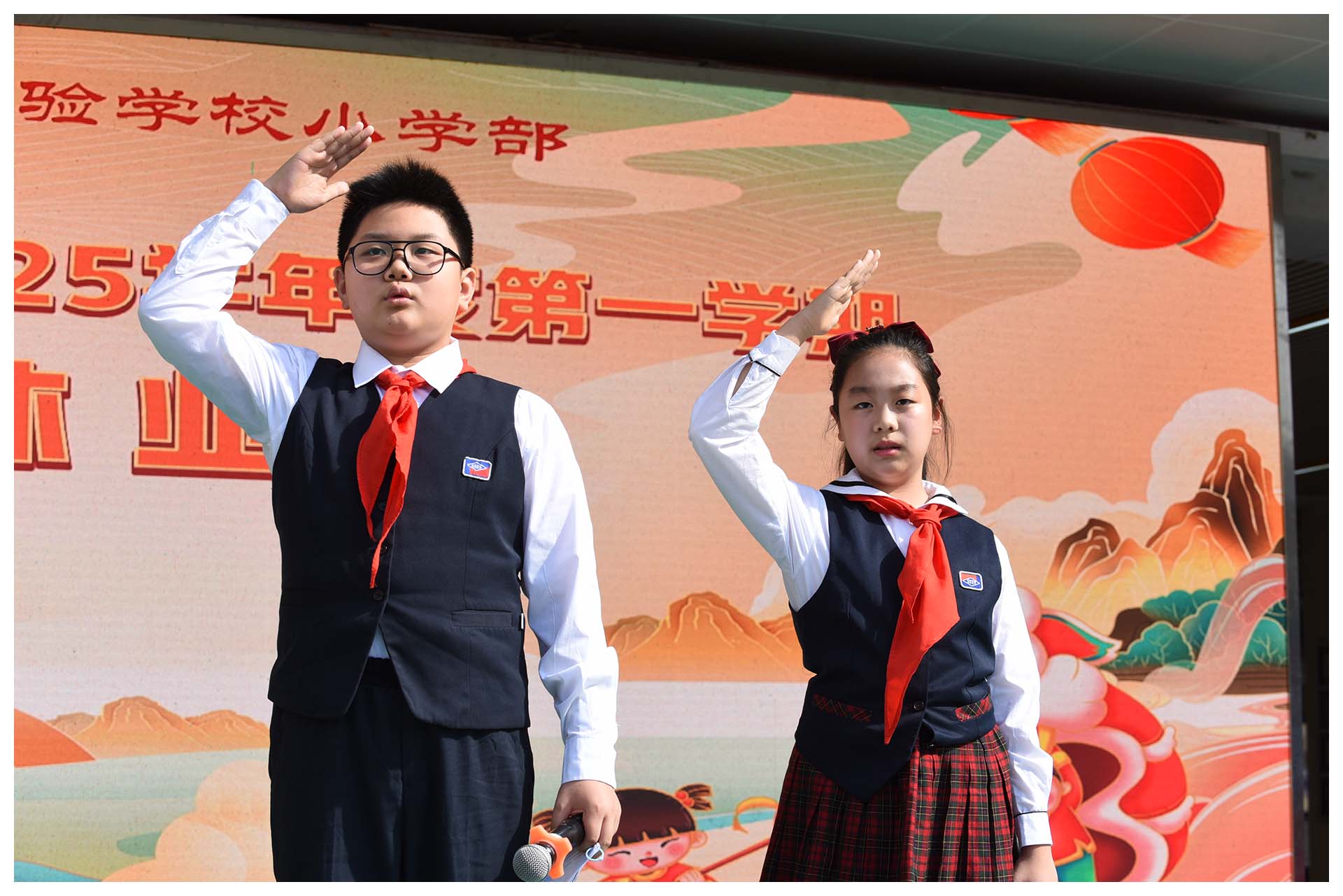 休业式在庄严的升旗仪式中拉开序幕。全体师生面向国旗,高唱国歌,激昂的歌声传递着对祖国深深的敬意。