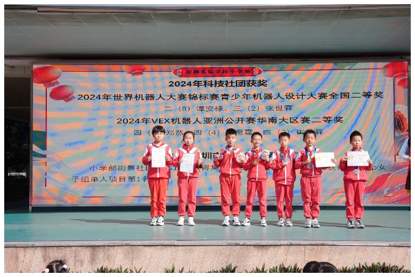 在2024年世界机器人大赛锦标赛青少年机器人设计大赛和2024年VEX机器人亚洲公开赛华南大区赛中,小学部五位学子获得二等奖。