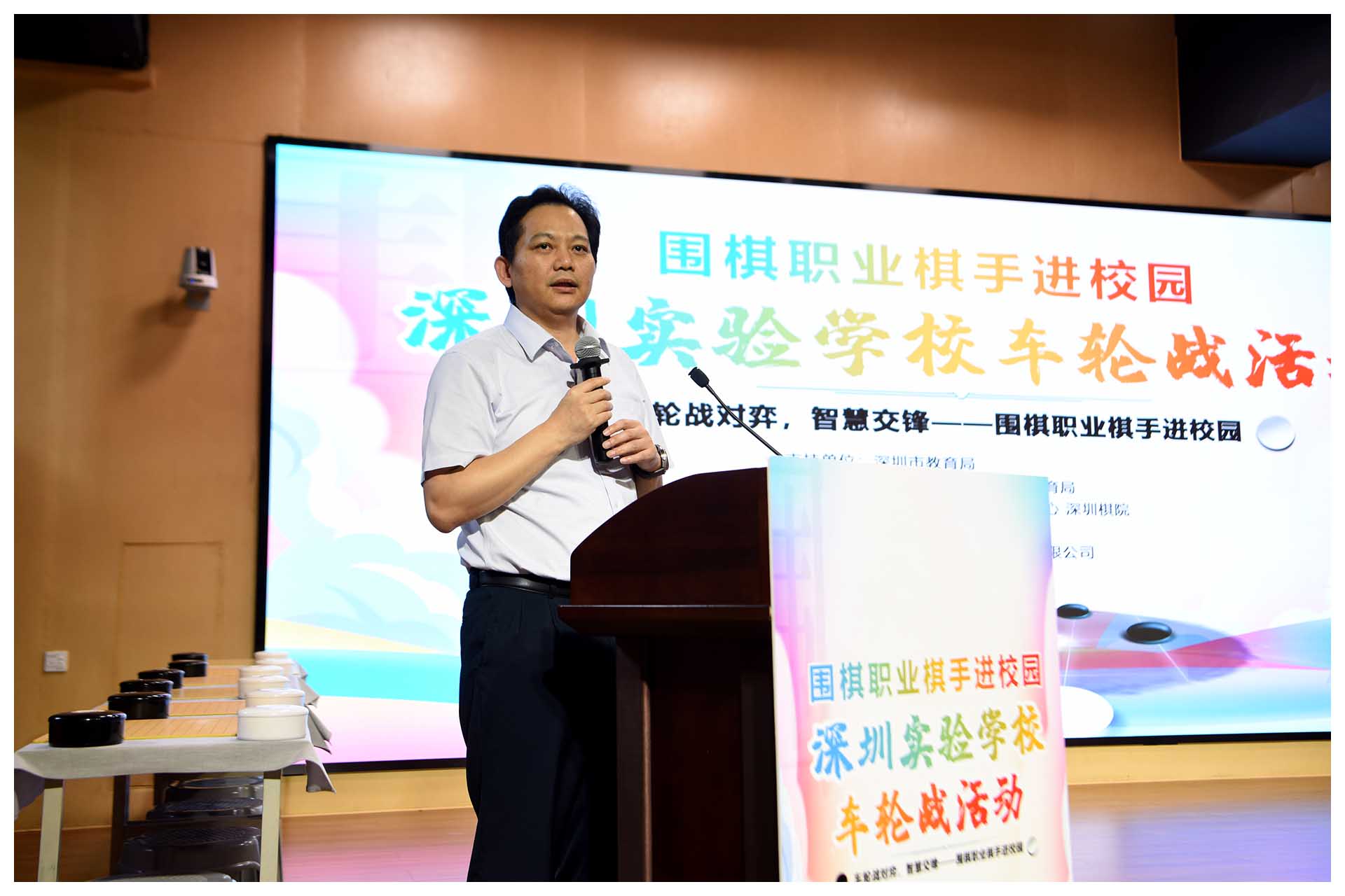 本次活动在深圳市教育局和深圳市文化广电旅游体育局的直接关心和大力推动下,由深圳市群众体育促进中心深圳棋院主办,深圳厚势围棋俱乐部有限公司和我校共同承办。