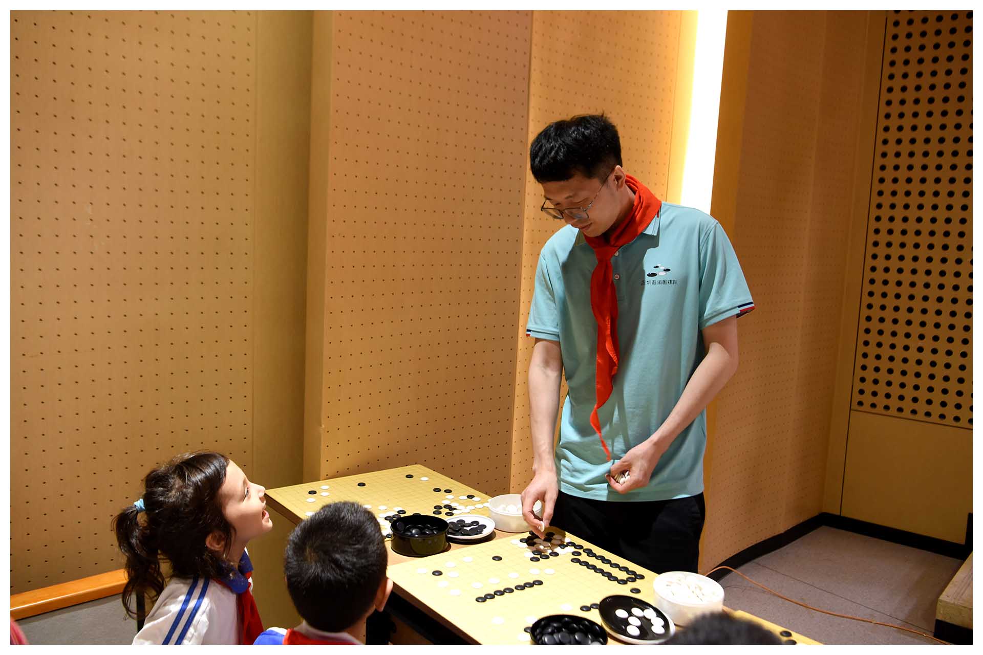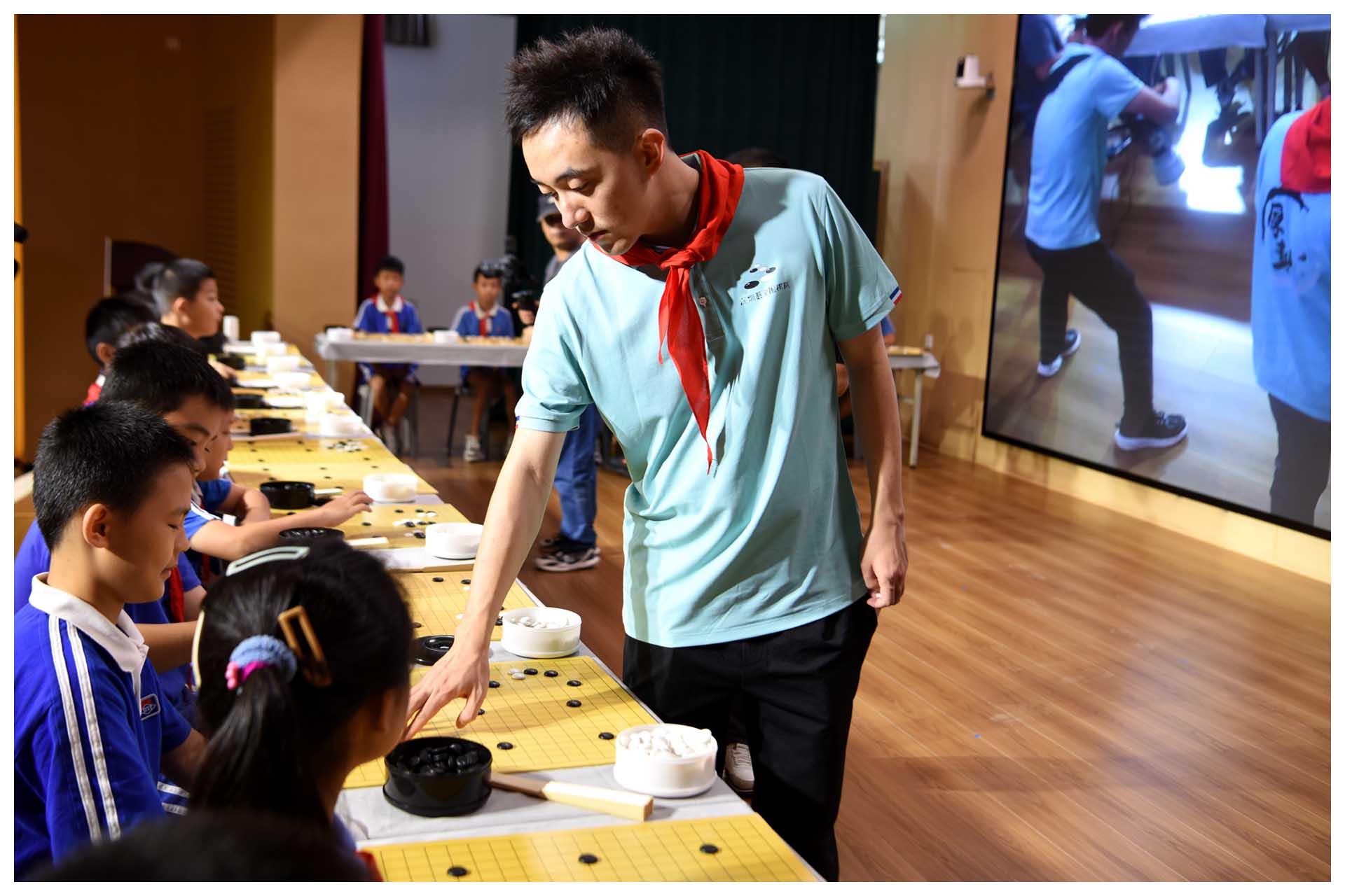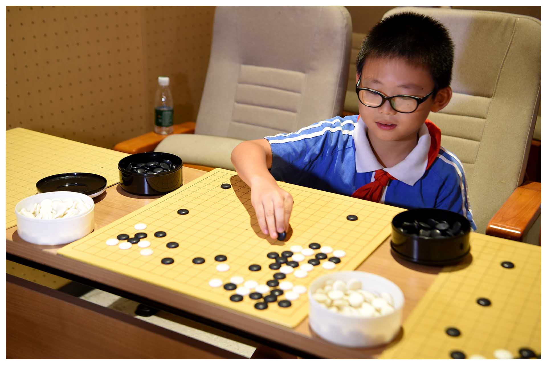 活动采取围棋职业棋手车轮战的方式,确保每个孩子都能跟九段高手过过招。没有到达现场的孩子和家长,也能通过直播,感受现场热烈的对弈氛围,活跃的智慧交锋,以及职业高手强大的气场、实验学子初生牛犊不畏虎的镇定从容。