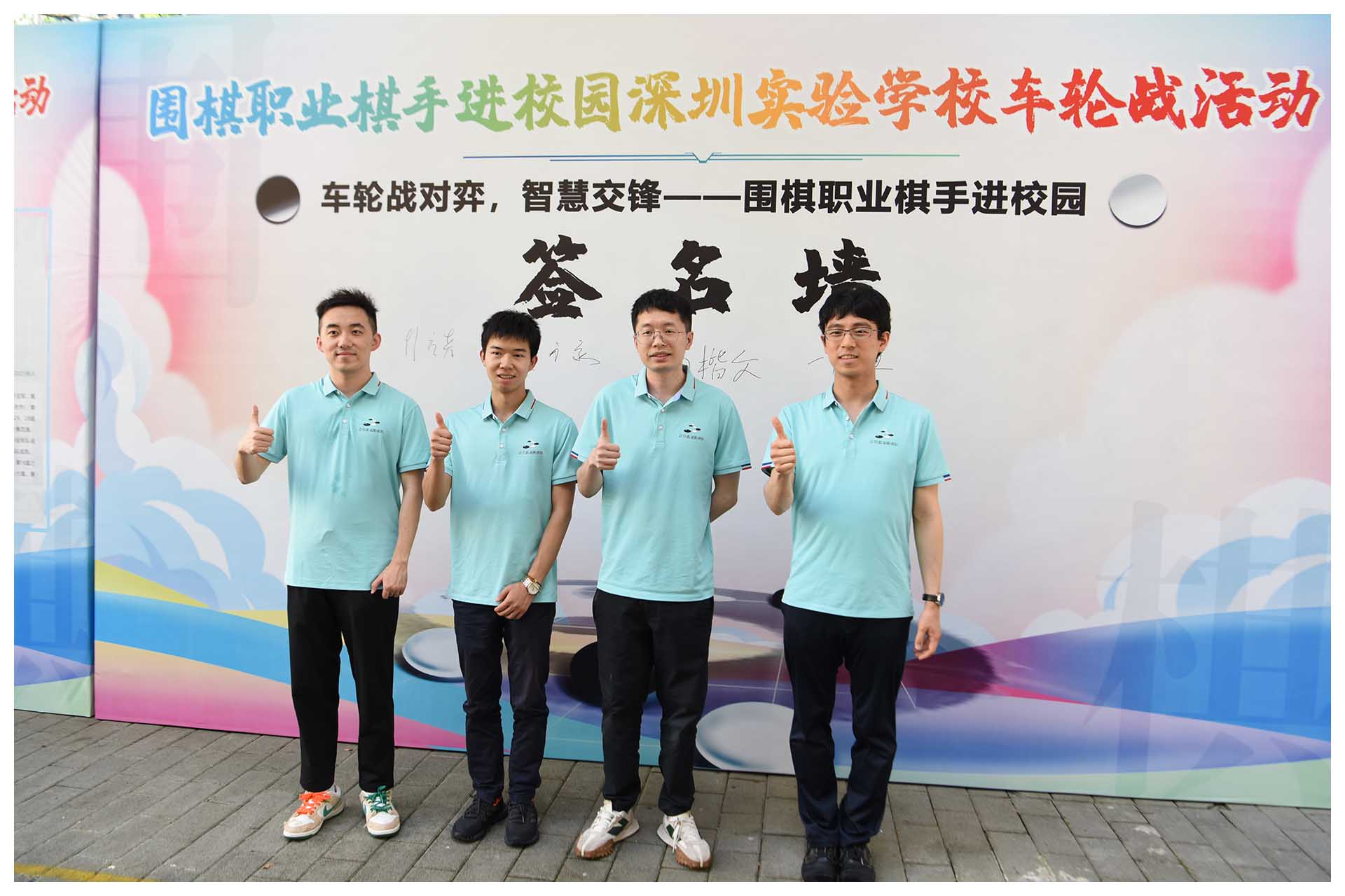 近日,我校迎来了一群棋坛高手,他们是:世界冠军、围棋职业九段辜梓豪,围棋职业九段杨楷文,围棋职业九段日本棋圣一力辽,围棋职业八段彭立尧。