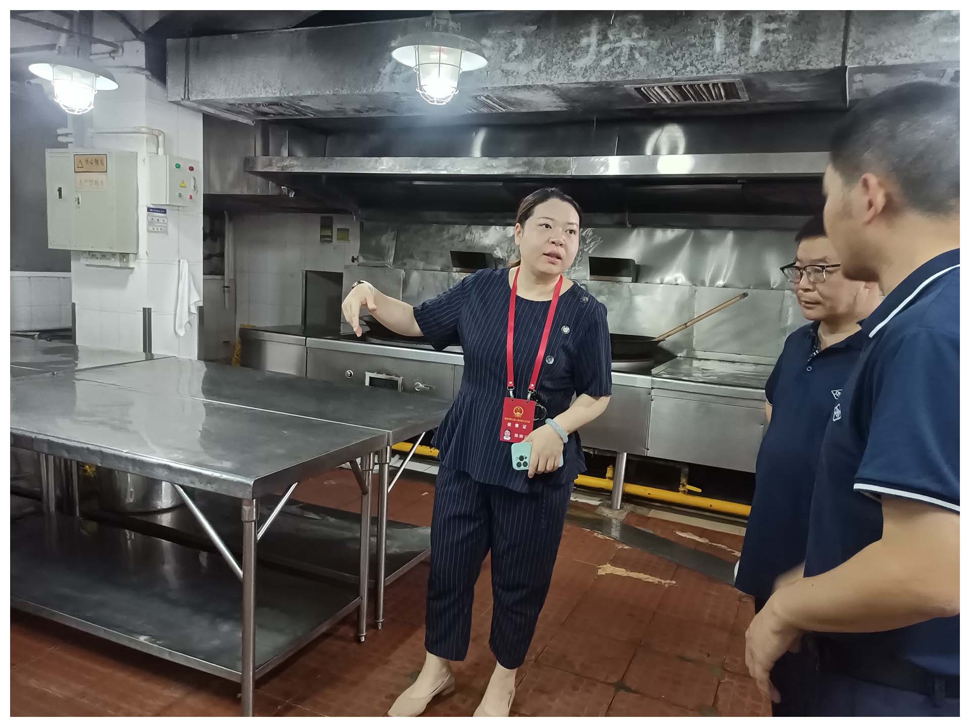 在学生餐厅及厨房,调研团队仔细查看了师生用餐条件及食堂设备,并深入了解了食材验收、食品安全、环境卫生和管理机制等方面的情况。得知深圳实验学校小学部建校以来就坚持食堂自营,目前在校用餐人数占全校学生人数的71.87%,师生满意度高达91.8%,陈晓云代表、钟义应副局长表示非常欣慰,并充分肯定了学校在保障师生饮食健康方面所做的努力。