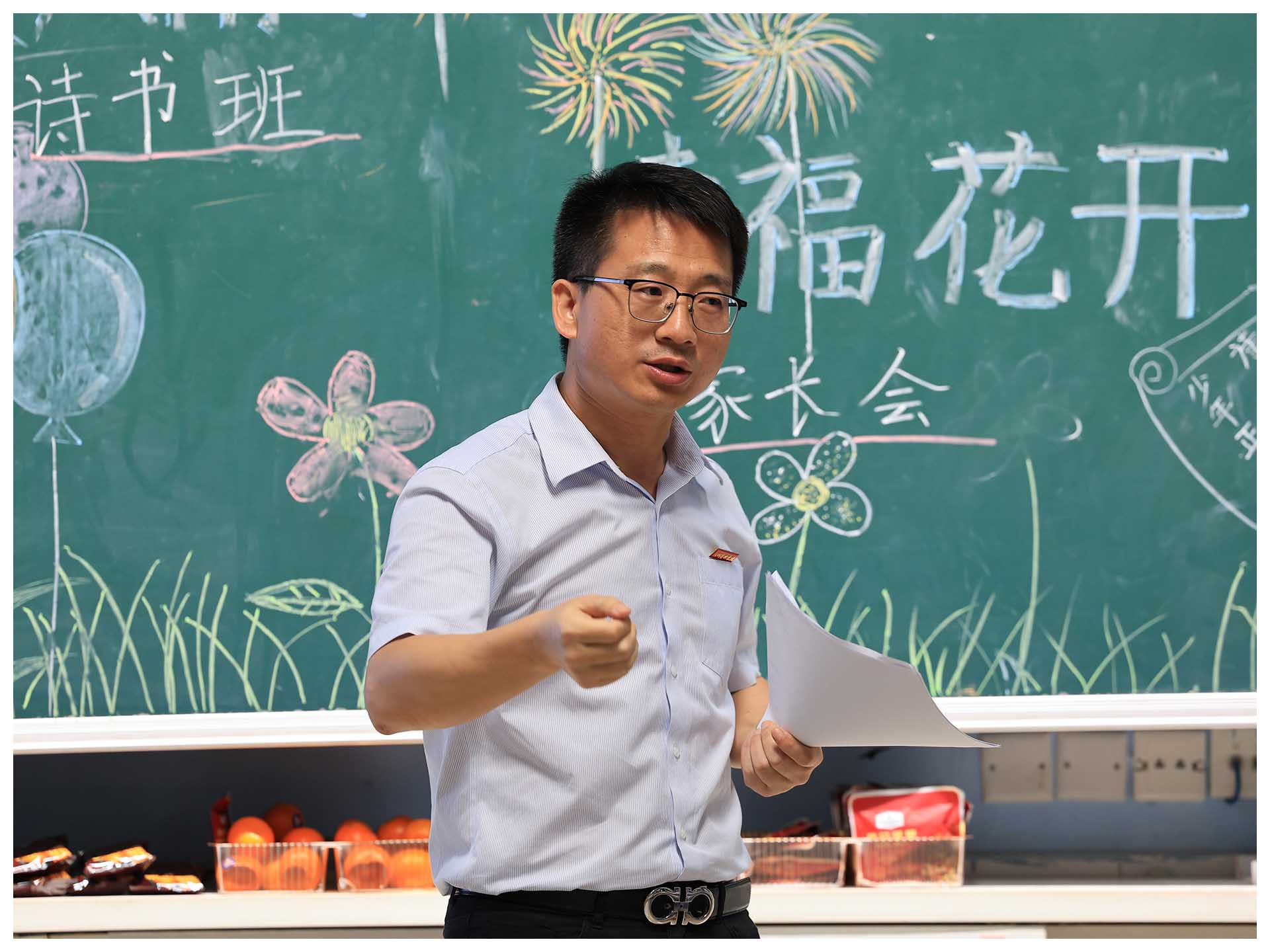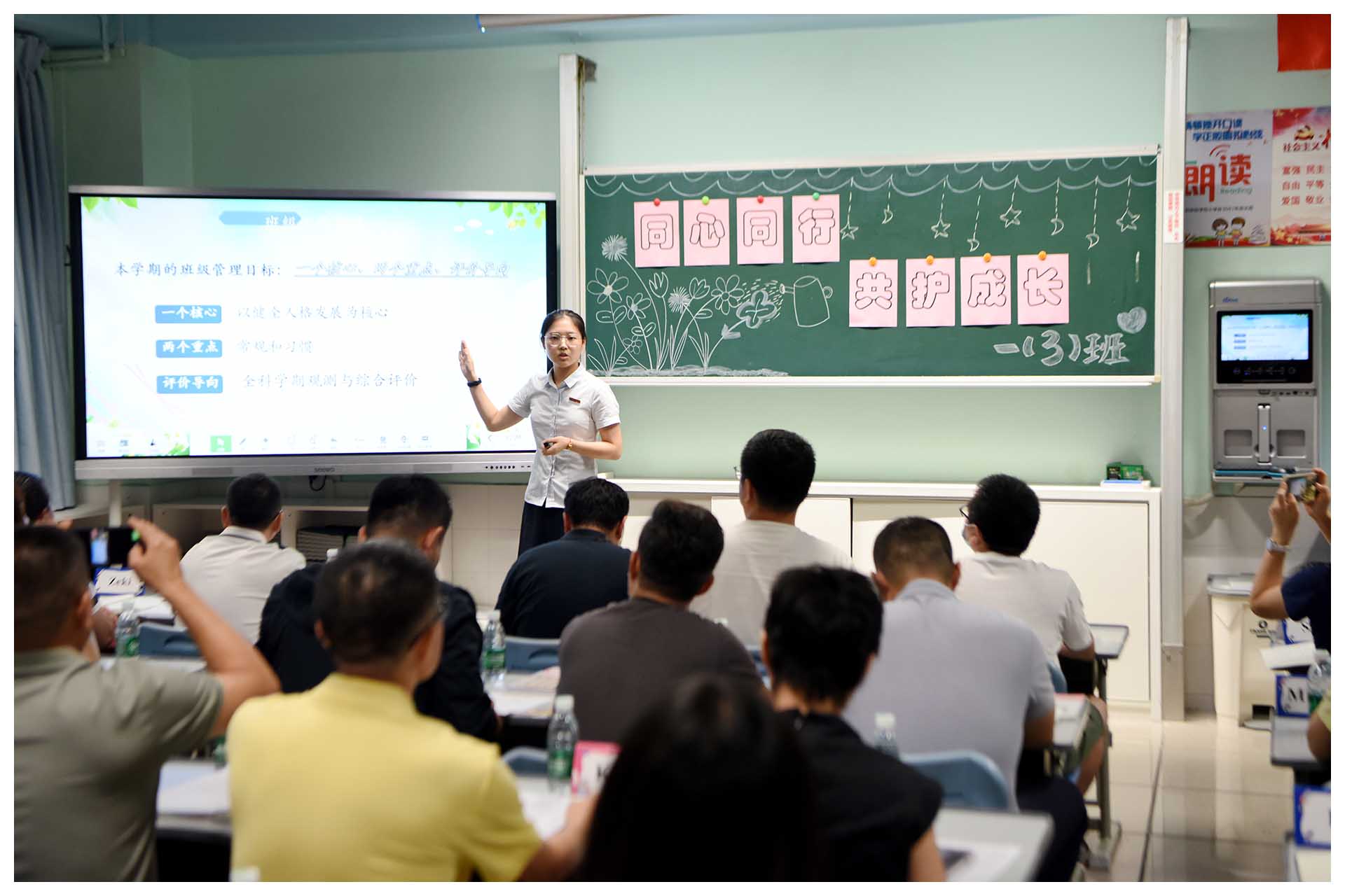 新学期家长会上,吴校以“怀智慧爱,守家校约,育国家才”为主题,向各位家长传递教育的真谛与期望。