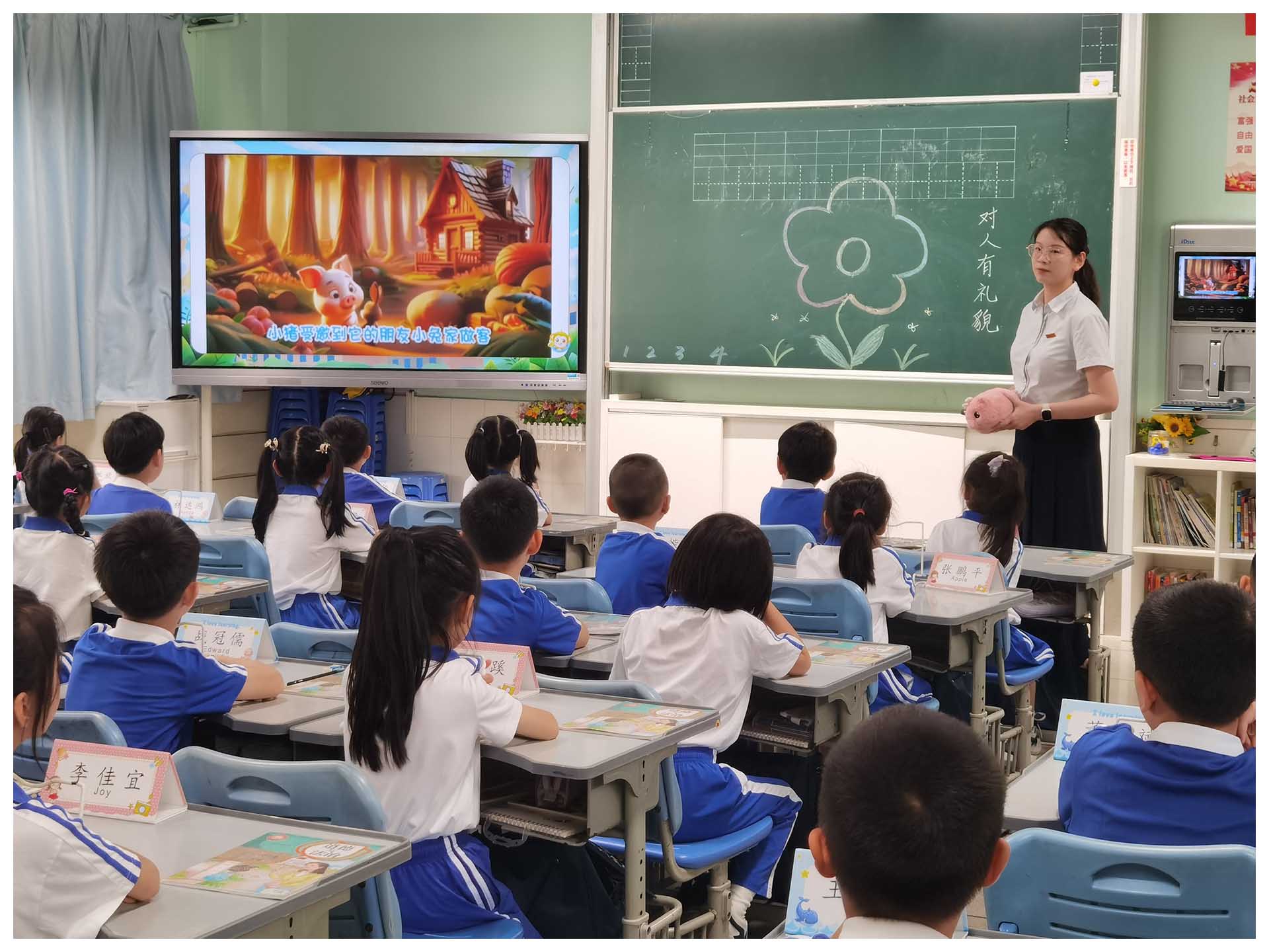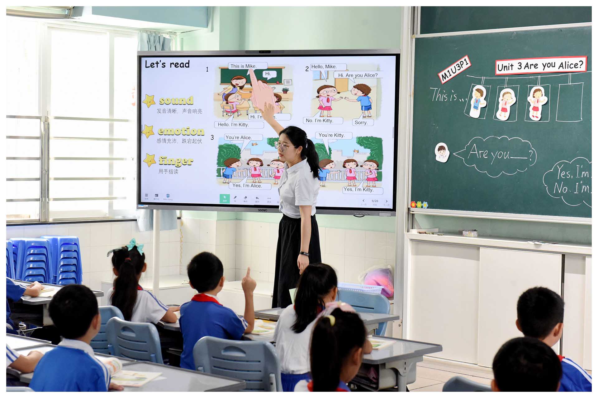 杨璨灿老师执教《3AM1U3 Period 1 Are you Alice?》一课。本课以新生Mike校园一天为大情境,串联起认识同学、与同学游戏、共同归还失物等小活动,在会话的学习及运用中习得语言。教研员王莉老师称赞本课情境创设真实巧妙,符合学情,课堂设计结构化,促进了认知深化与语言实践。小学部英语学科积极探索高效教学策略,以生为本,寓教于乐,借助英语课、英语周,培养学生核心素养。