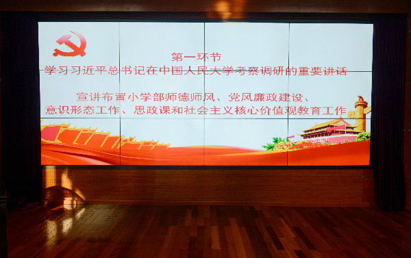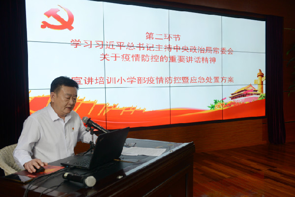 党课共分四个环节。其中重点是前两个环节,在第一个环节中,与会党员共同学习了习近平总书记考察调研中国人民大学的重要讲话,支部书记对小学部师德师风、党风廉政建设、意识形态工作、思政课和社会主义核心价值观教育工作进行宣讲布置;在第二个环节中,大家集中学习了习近平总书记主持中央政治局常委会关于疫情防控的重要讲话精神,并对《小学部疫情防控暨应急处置方案》进行学习培训。